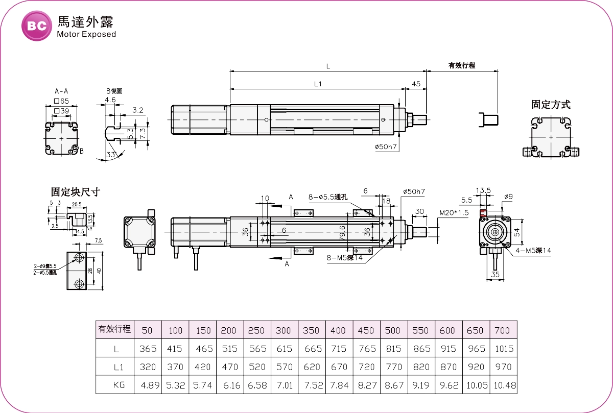 | Hubteilung (mm) | 50-700 mm / 50 mm Steigung | |||||