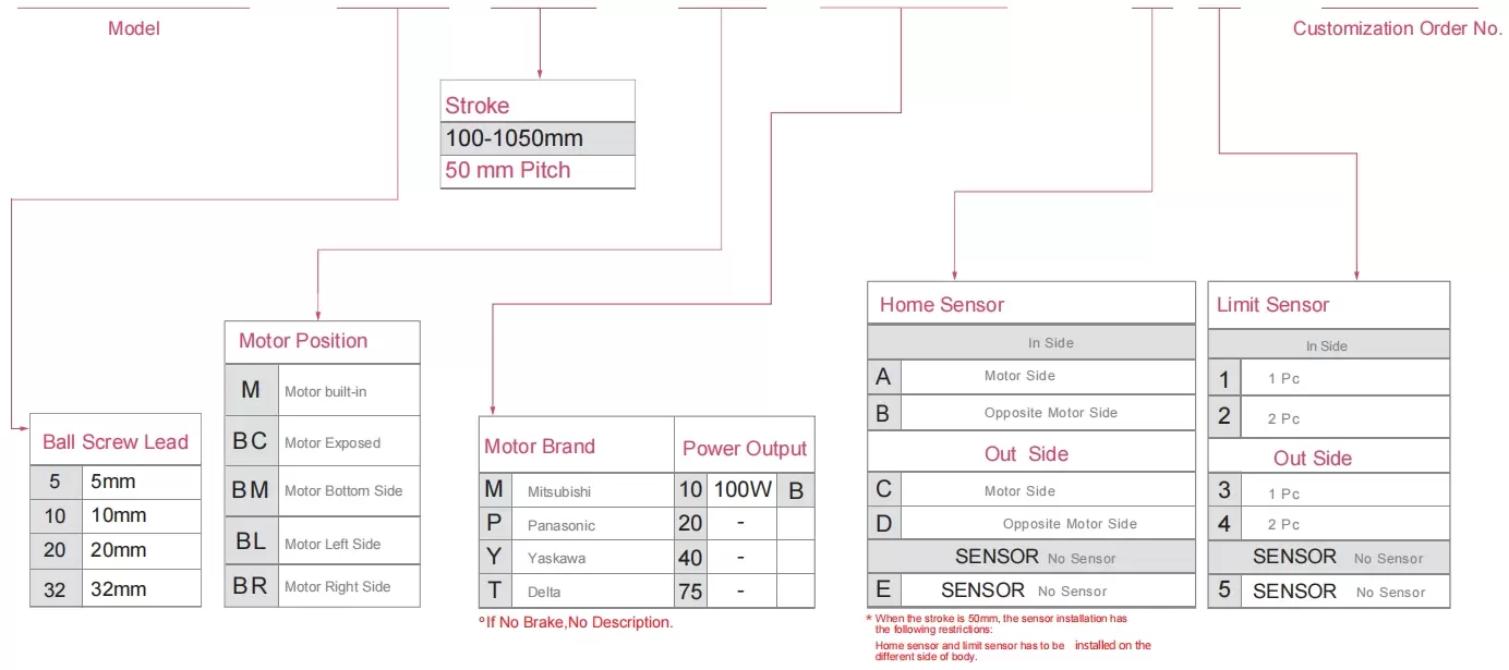 | Verwendungsort | Fahrmodus | Modellspezifikation | Motorleistung (w) | Breite (mm) | Wiederholbarkeit (mm) | Kugelgewindetrieb-Spezifikation | Maximale Nutzlast (kg) | Höchstgeschwindigkeit (mm/s) *1 | ||