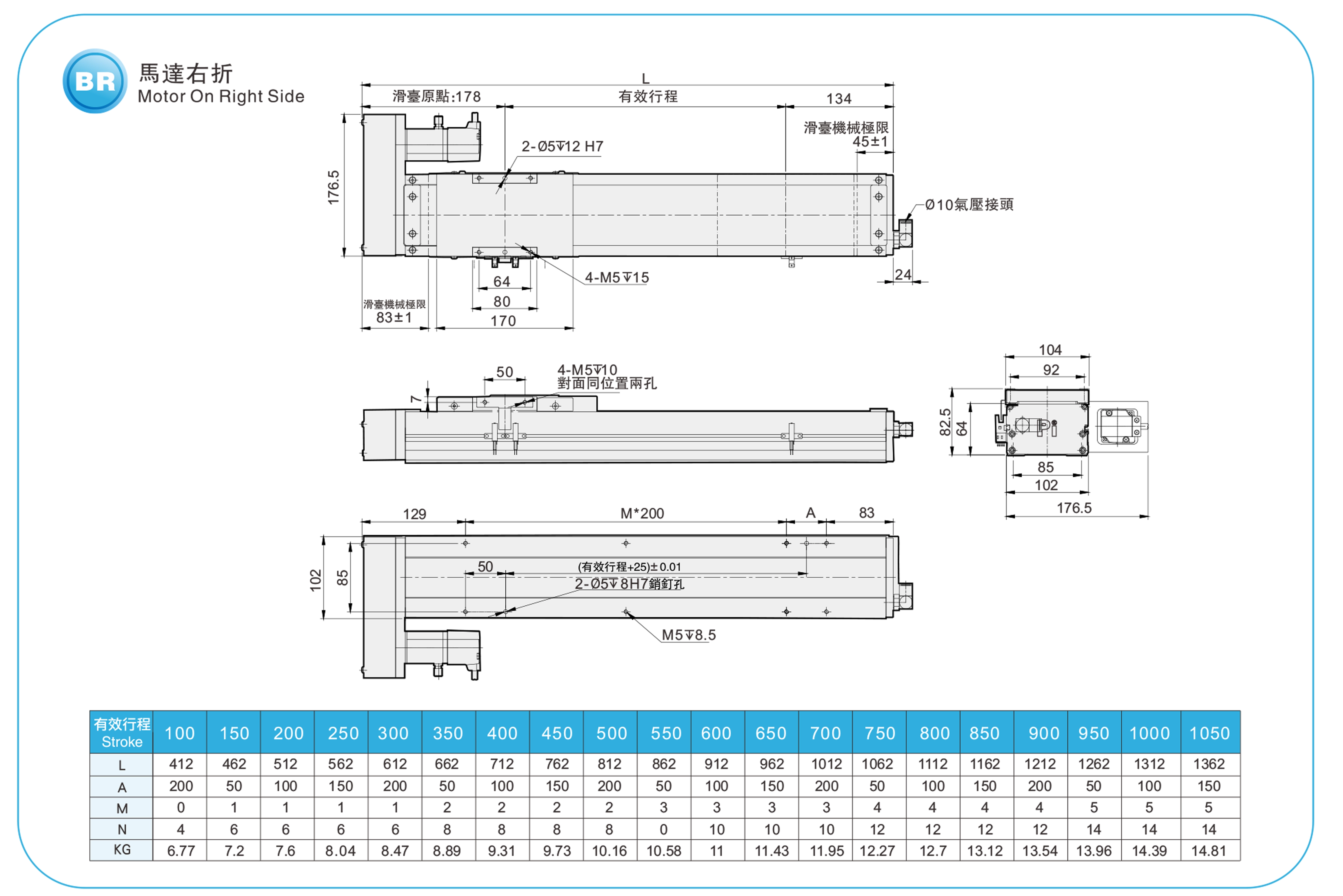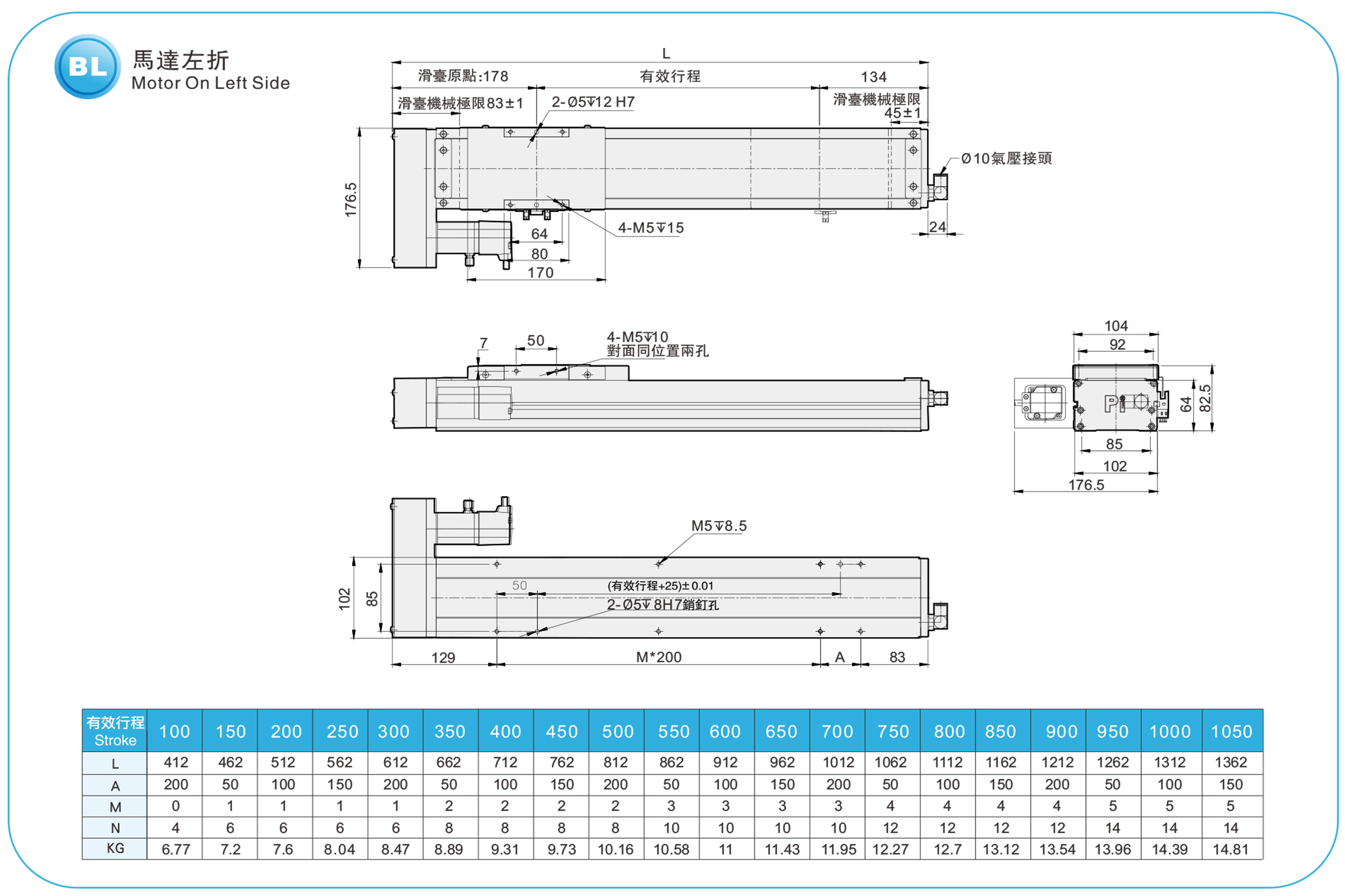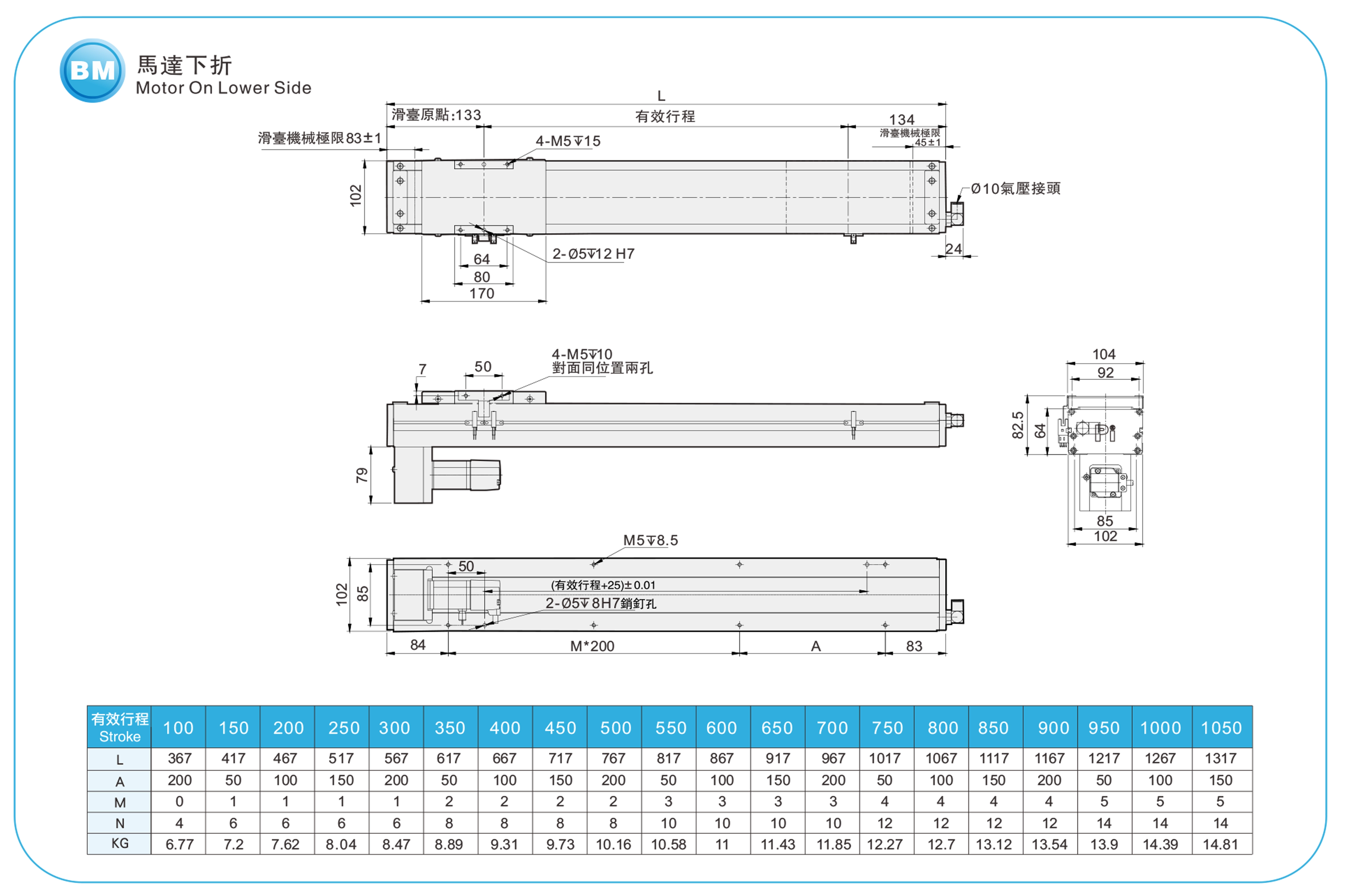 | Hubteilung (mm) | 100–1050 mm / 50 mm Steigung | |||||