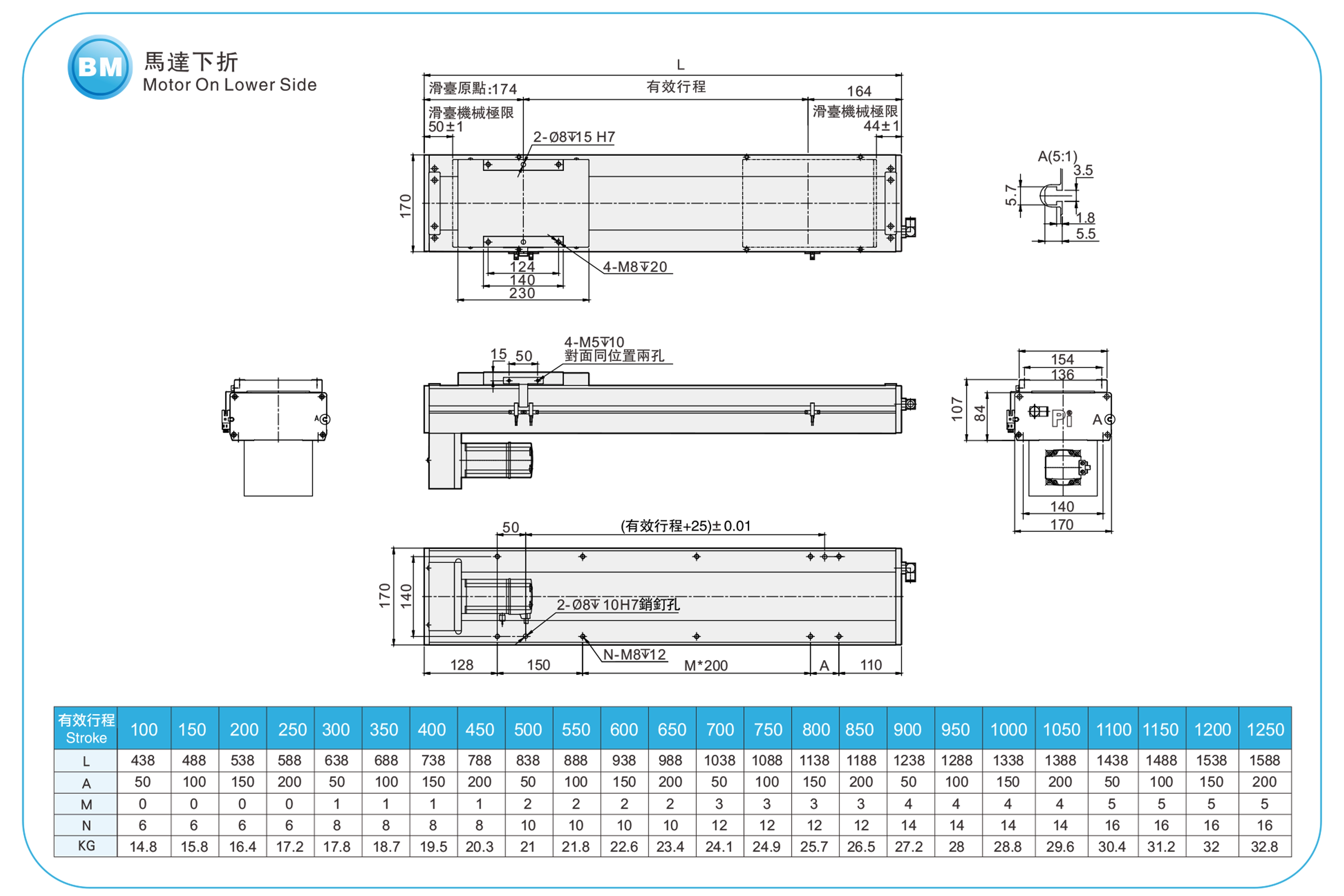 | Hubteilung (mm) | 100–1250 mm / 50 mm Steigung | |||||