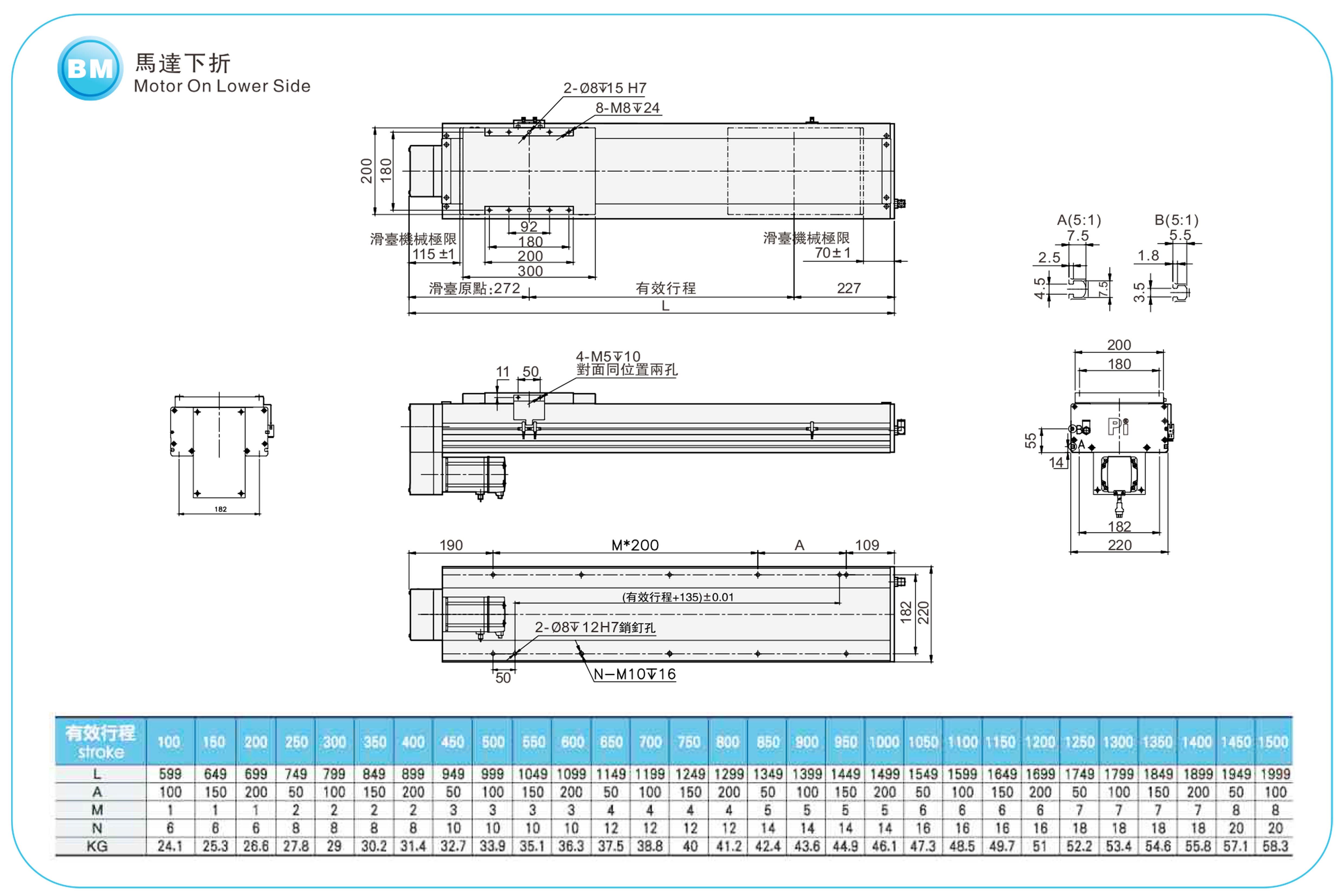 | Verwendungsort | Fahrmodus | Modellspezifikation | Motorleistung (w) | Breite (mm) | Wiederholbarkeit (mm) | Kugelgewindetrieb-Spezifikation | Maximale Nutzlast (kg) | Höchstgeschwindigkeit (mm/s) *1 | ||