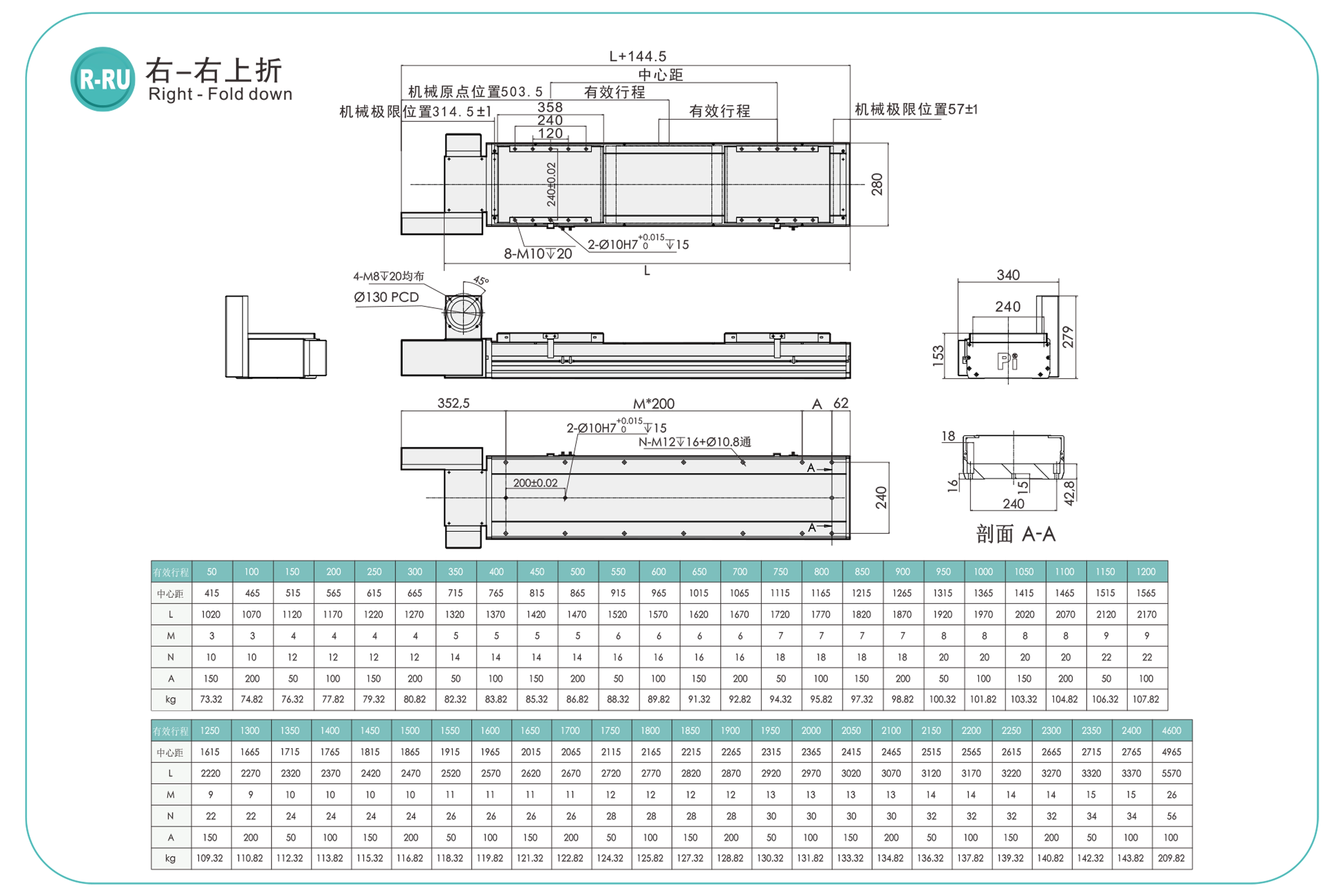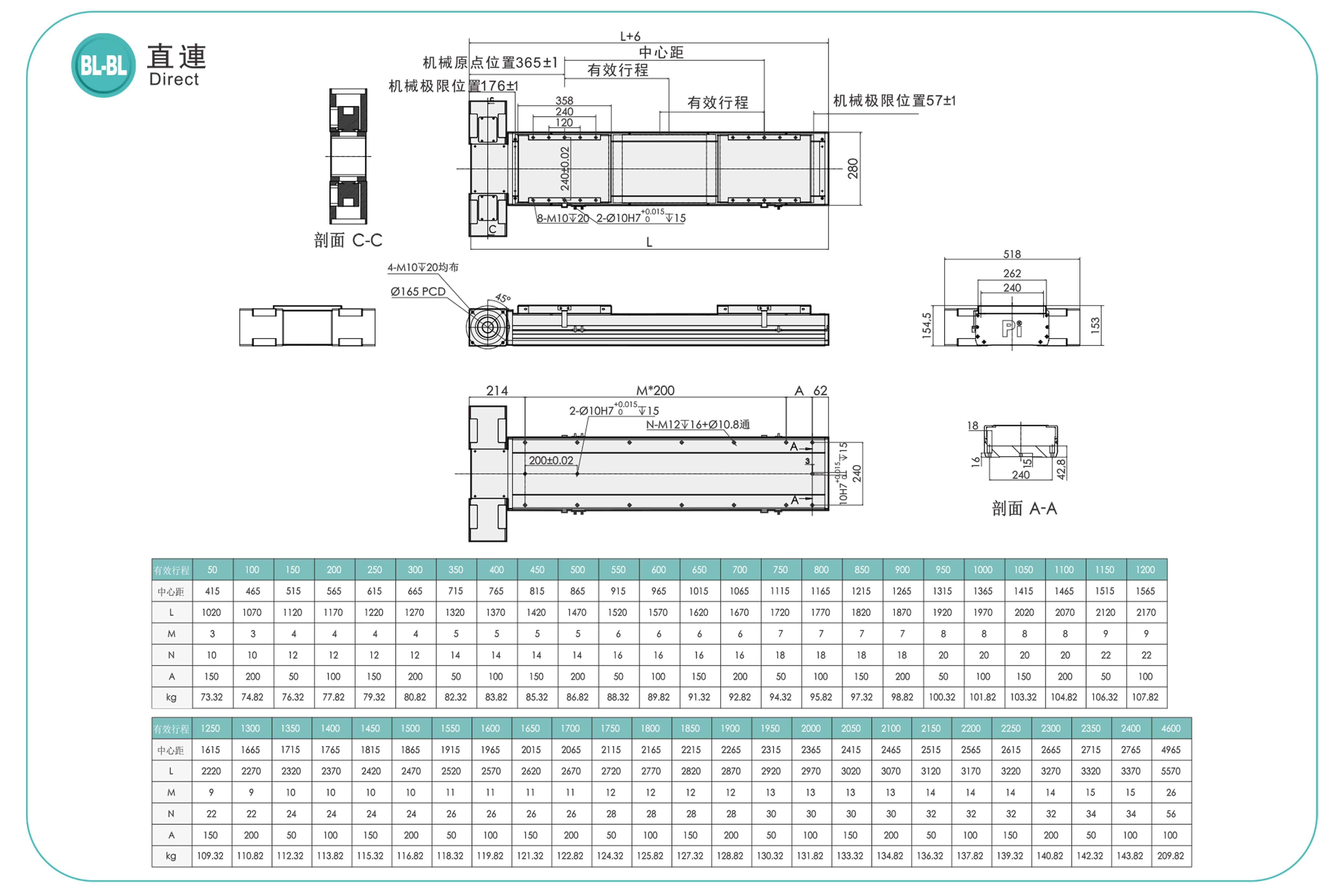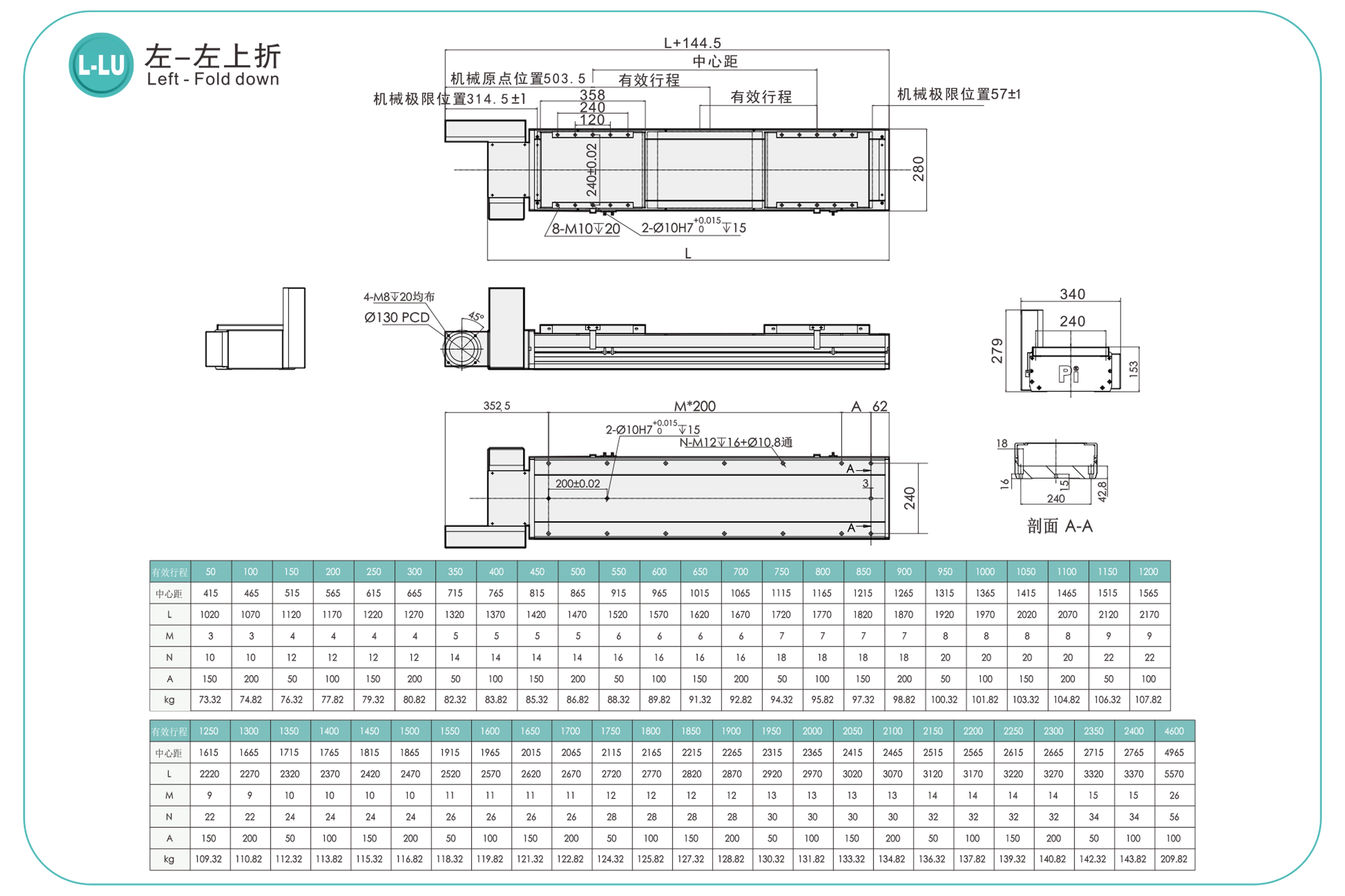 | Hubteilung (mm) | 50-6150 mm / 50 mm Steigung | ||