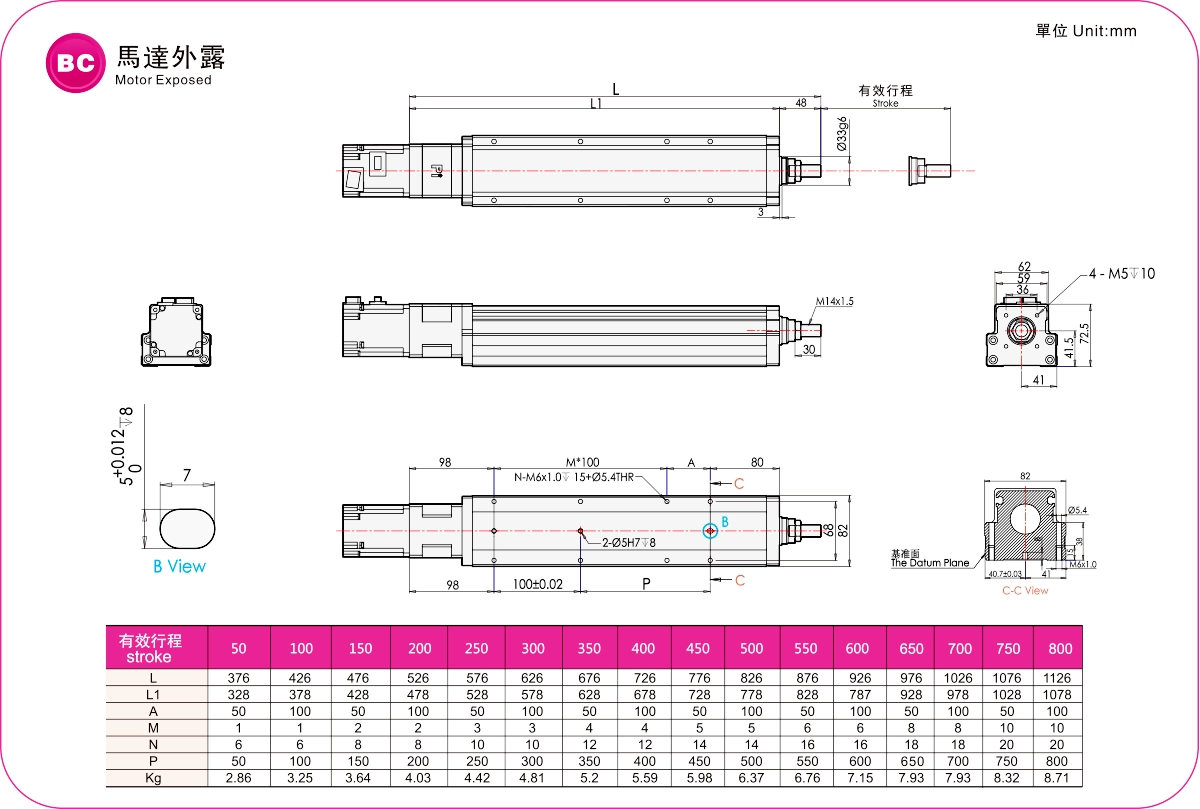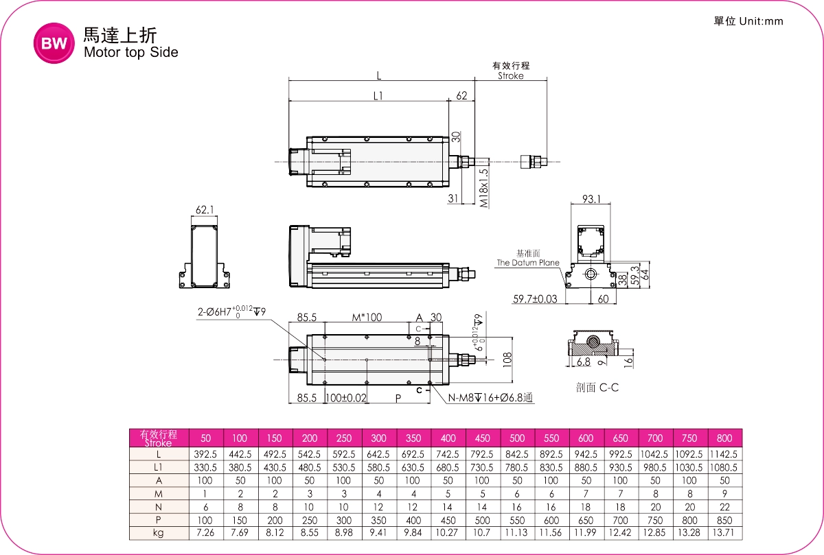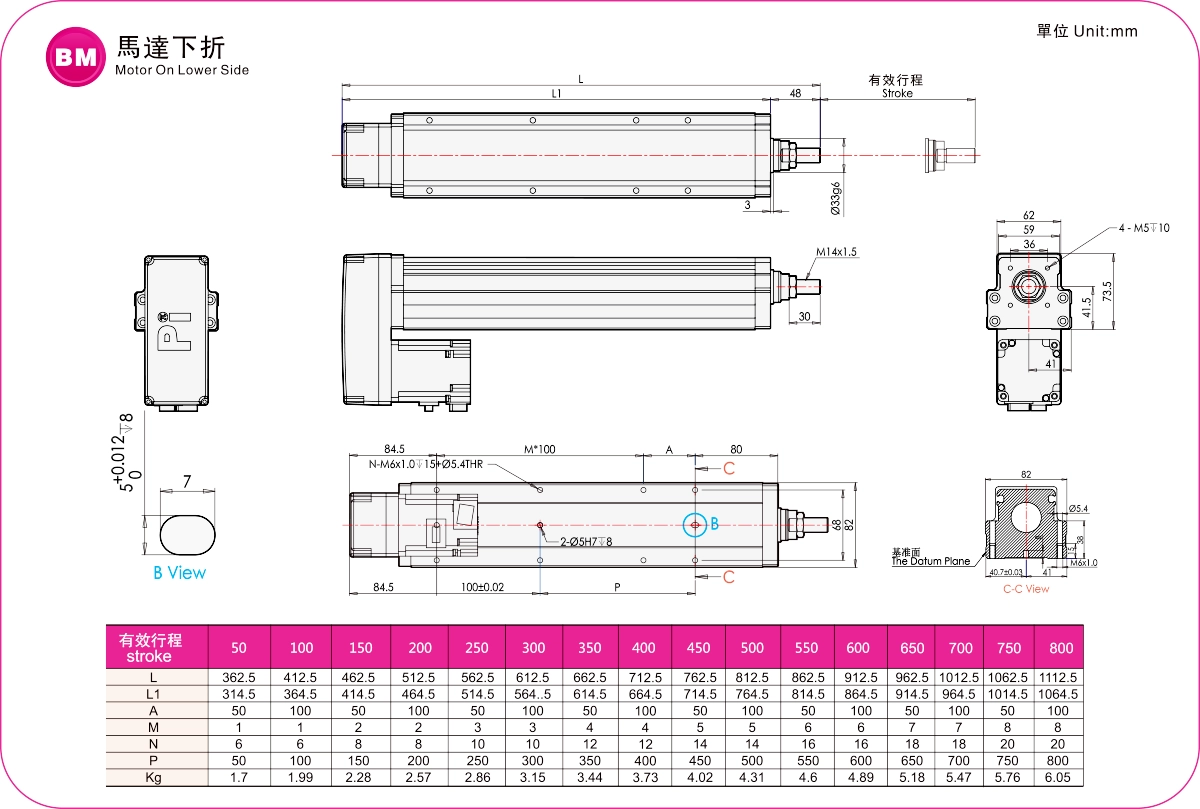 | Hubteilung (mm) | 50-800 mm / 50 mm Steigung | ||||