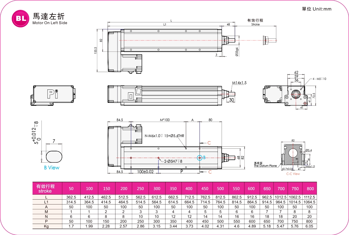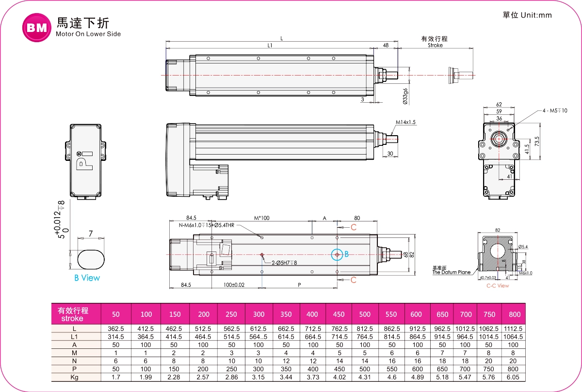 | Hubteilung (mm) | 50-800 mm / 50 mm Steigung | ||||