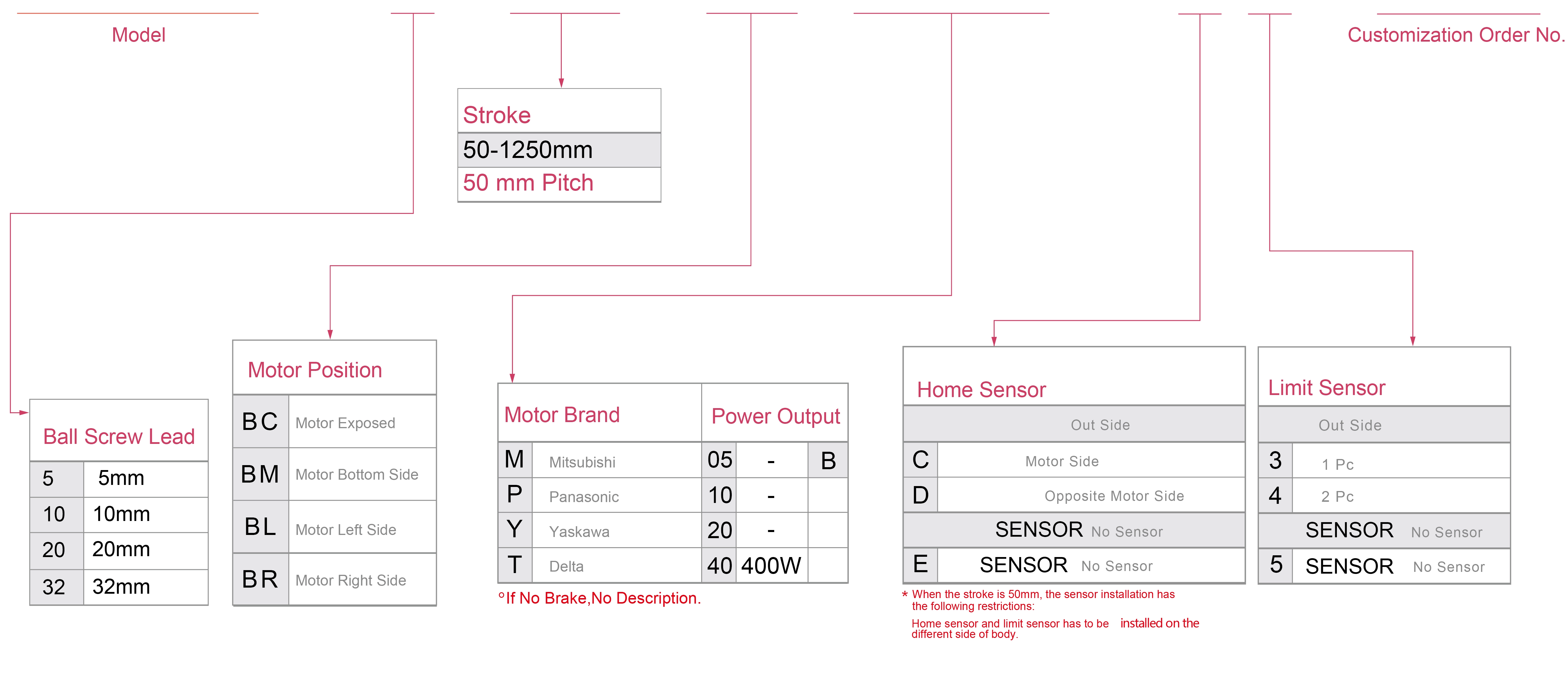 | Kugelgewindesteigung (mm) | 5 | 10 | 20 | 32 | ||