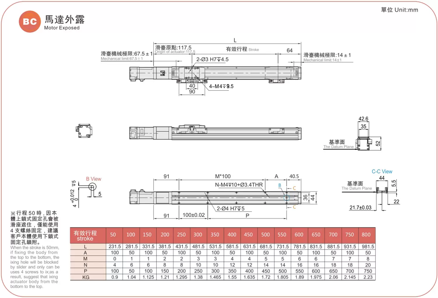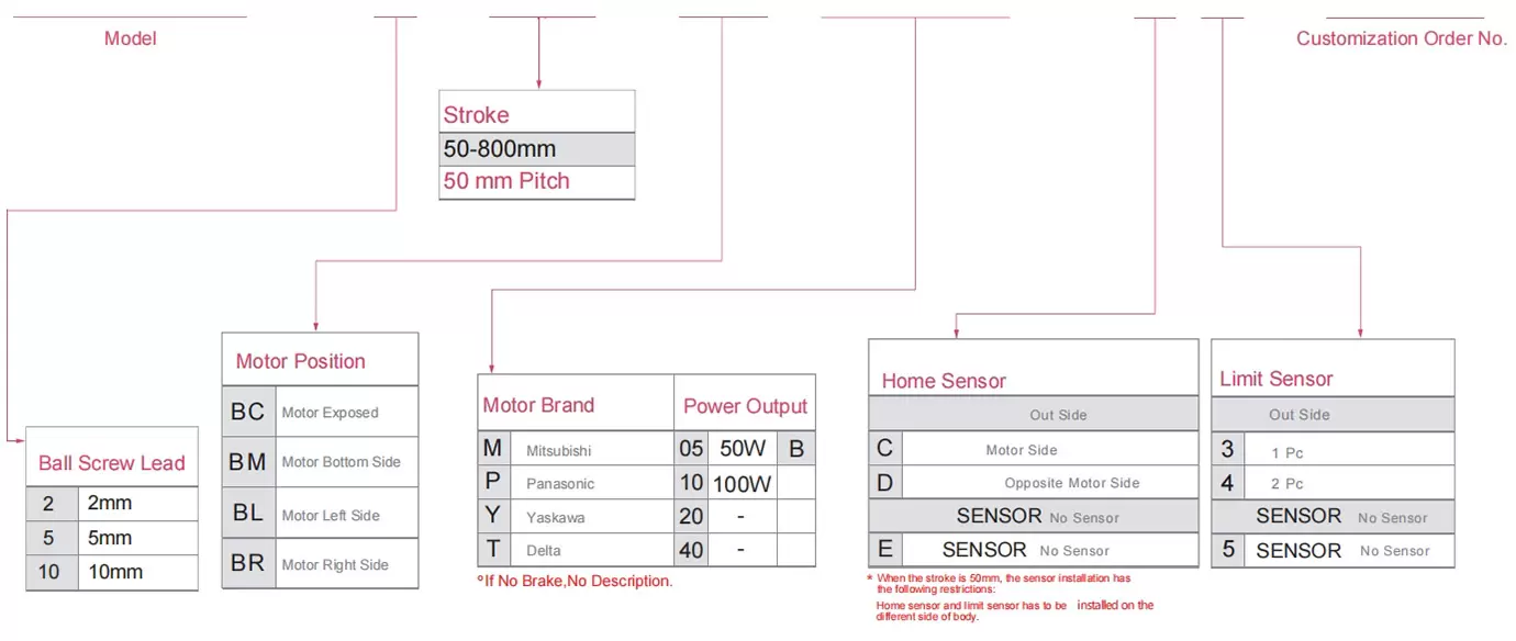 | Verwendungsort | Fahrmodus | Modellspezifikation | Motorleistung (w) | Breite (mm) | Wiederholbarkeit (mm) | Kugelgewindetrieb-Spezifikation | Maximale Nutzlast (kg) | Höchstgeschwindigkeit (mm/s) *1 | ||