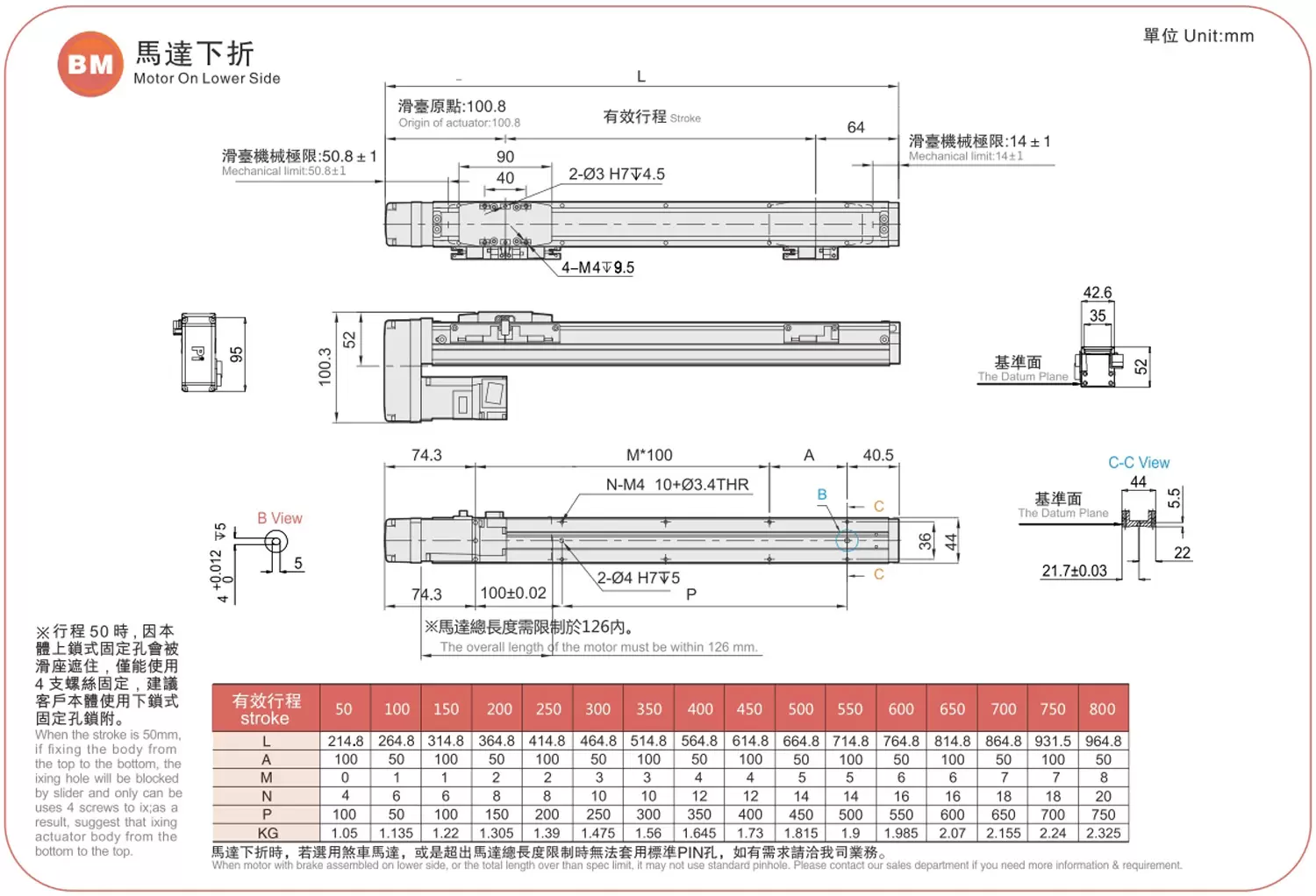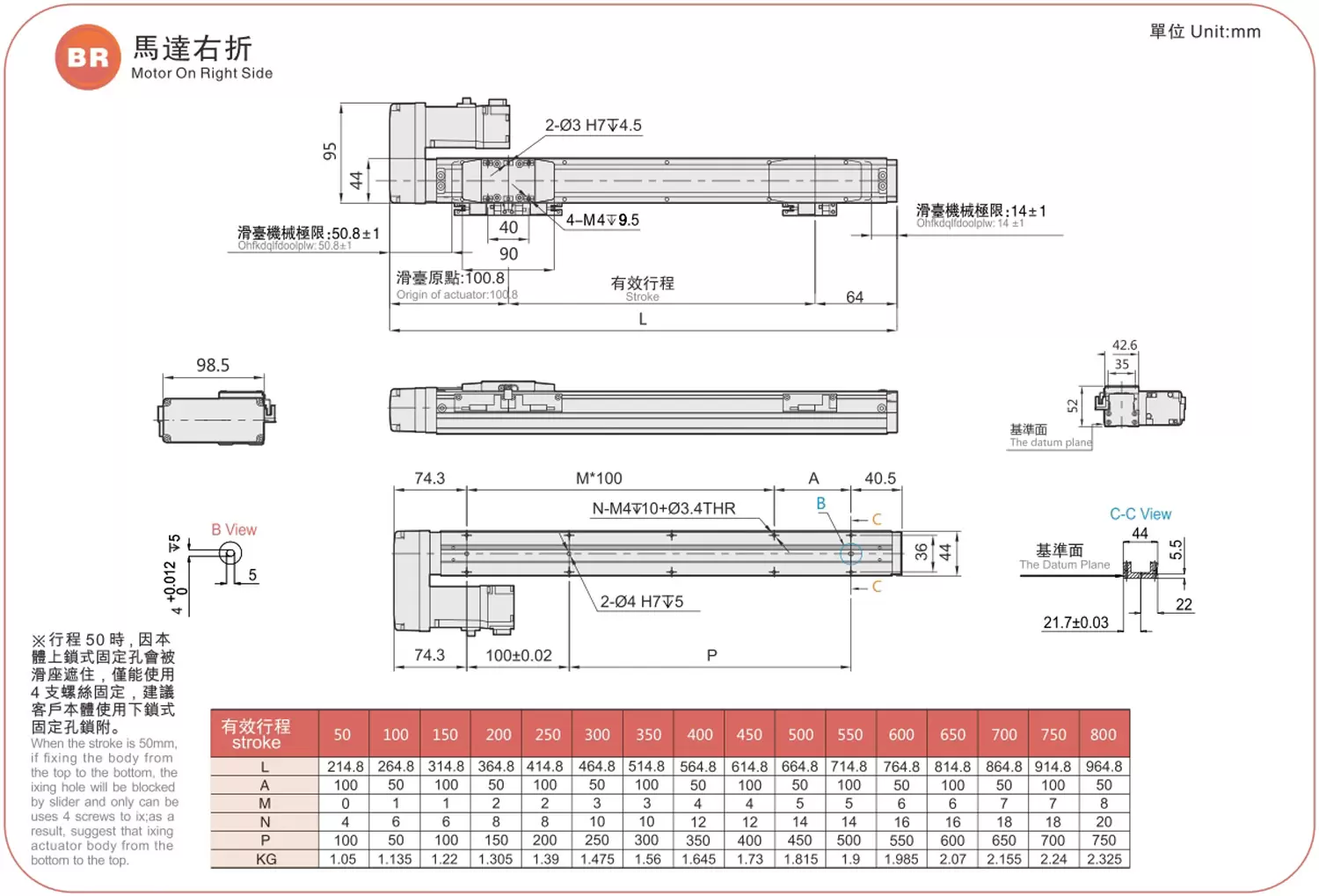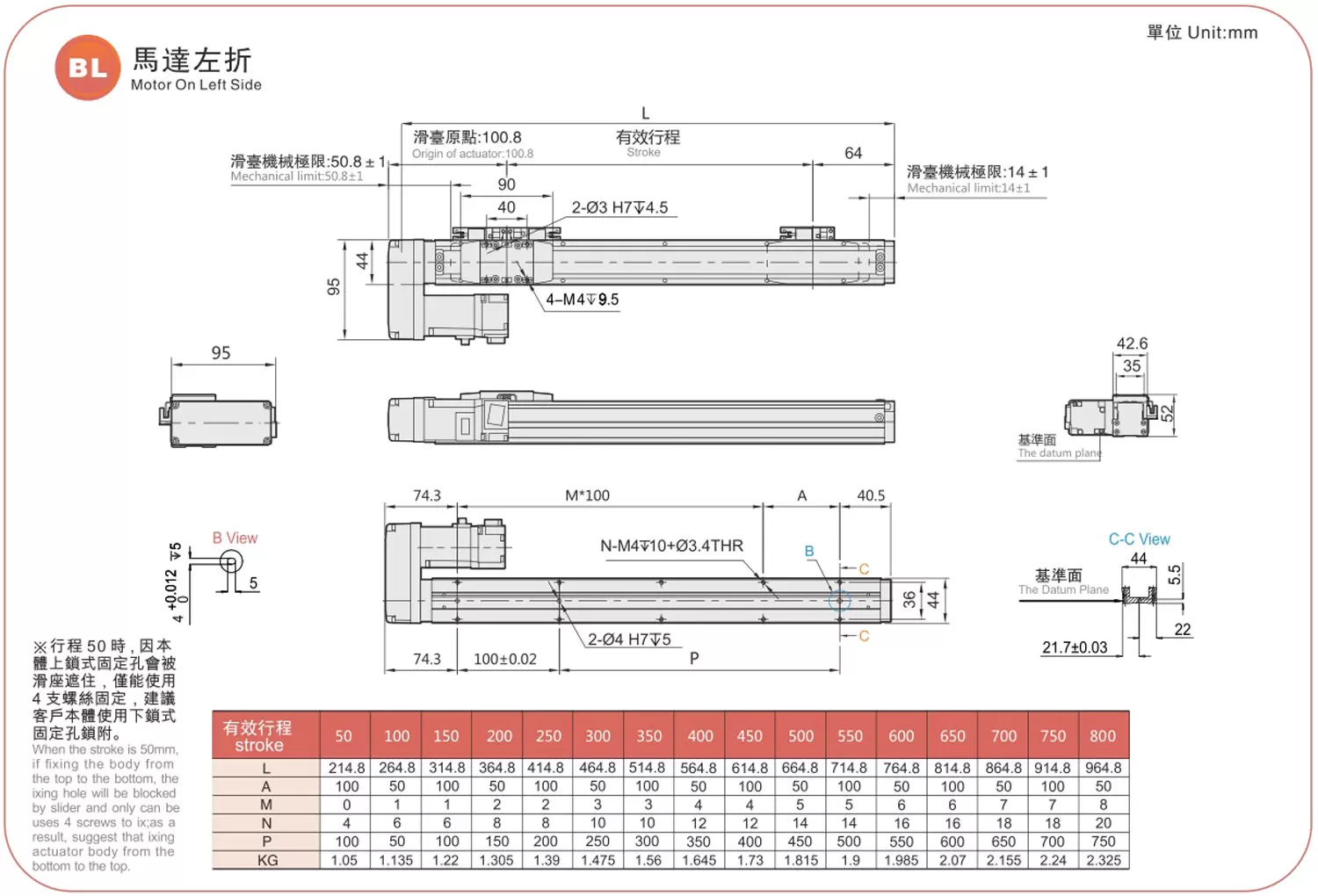 | Hubteilung (mm) | 50–800 mm / 50 mm Steigung | ||||
