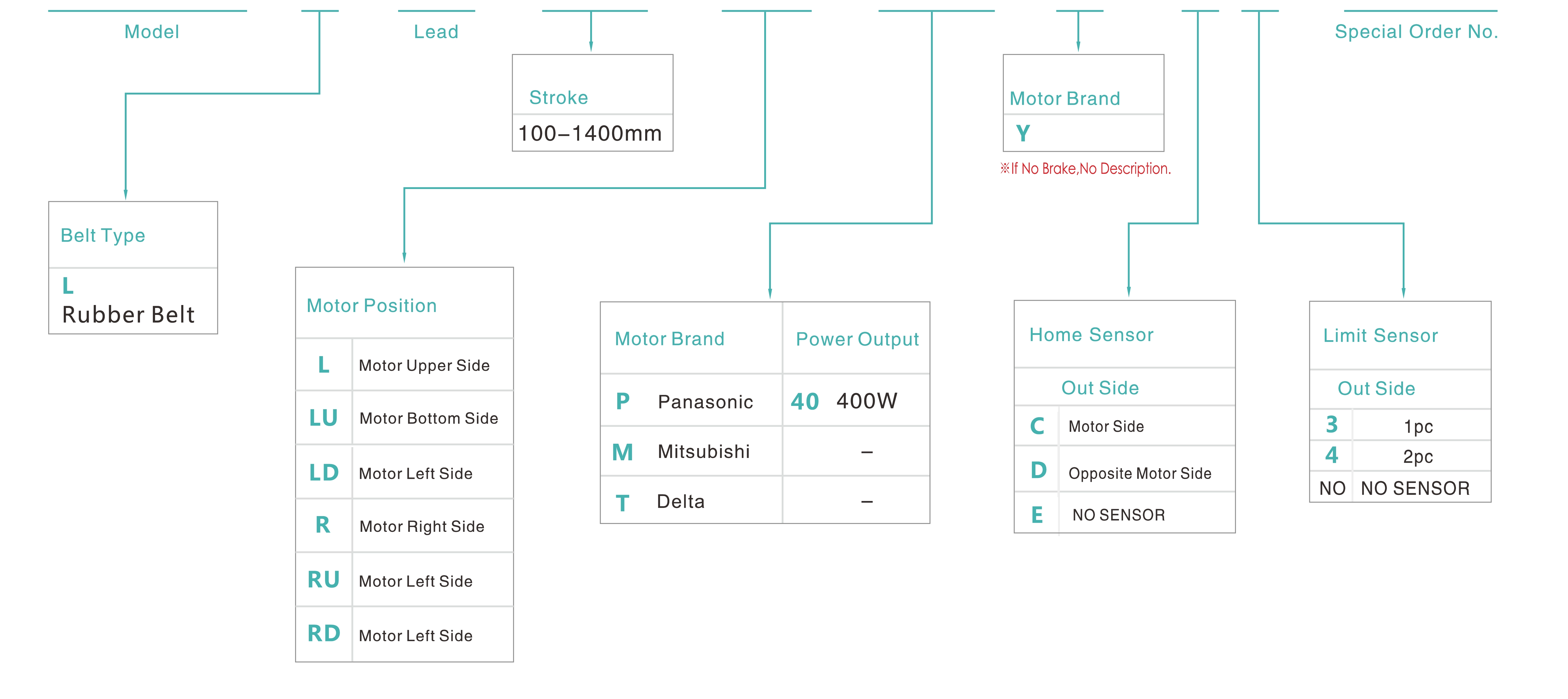 | Verwendungsort | Fahrmodus | Modellspezifikation | Reduziermechanismus | Motorleistung (w) | Breite (mm) | Wiederholbarkeit (mm) | Riemenspezifikation | Maximale Nutzlast (kg) | Höchstgeschwindigkeit (mm/s) *1 | ||