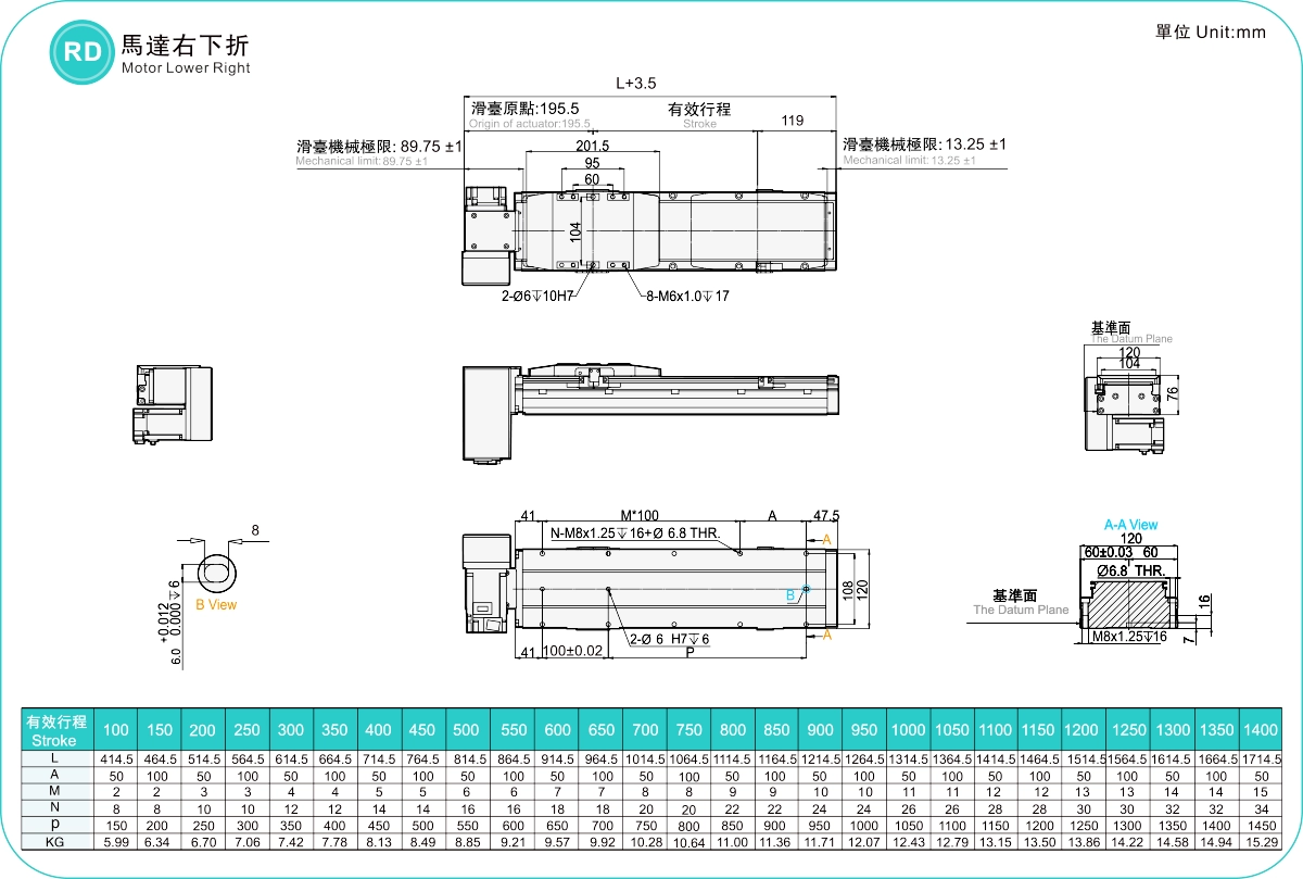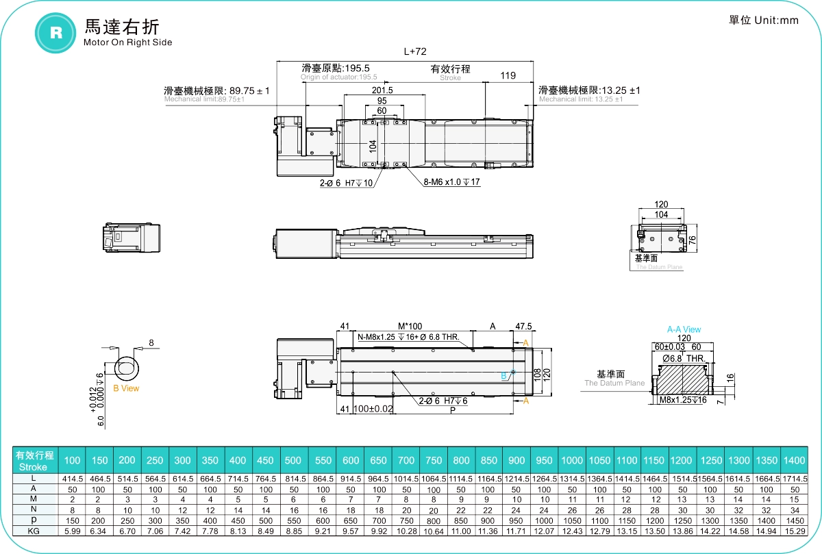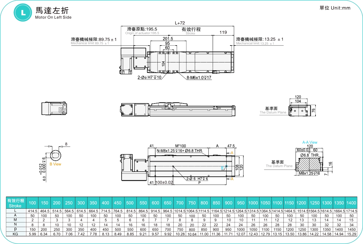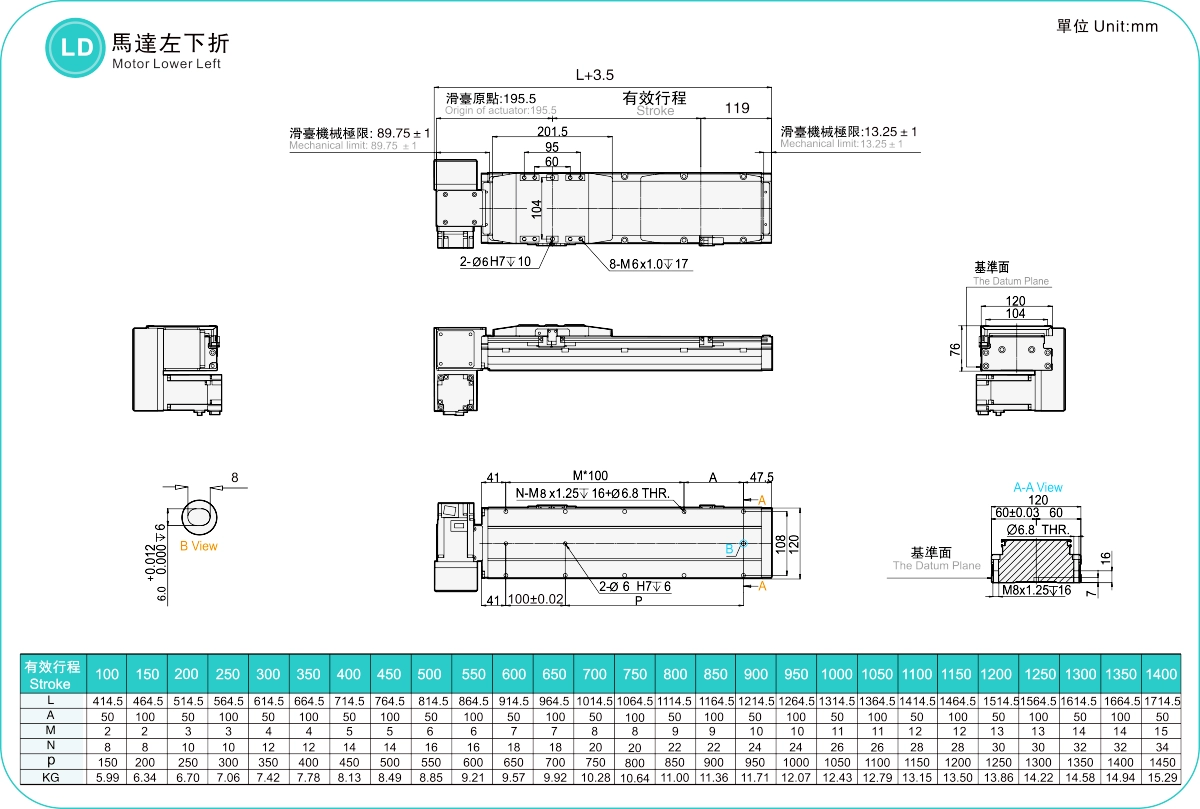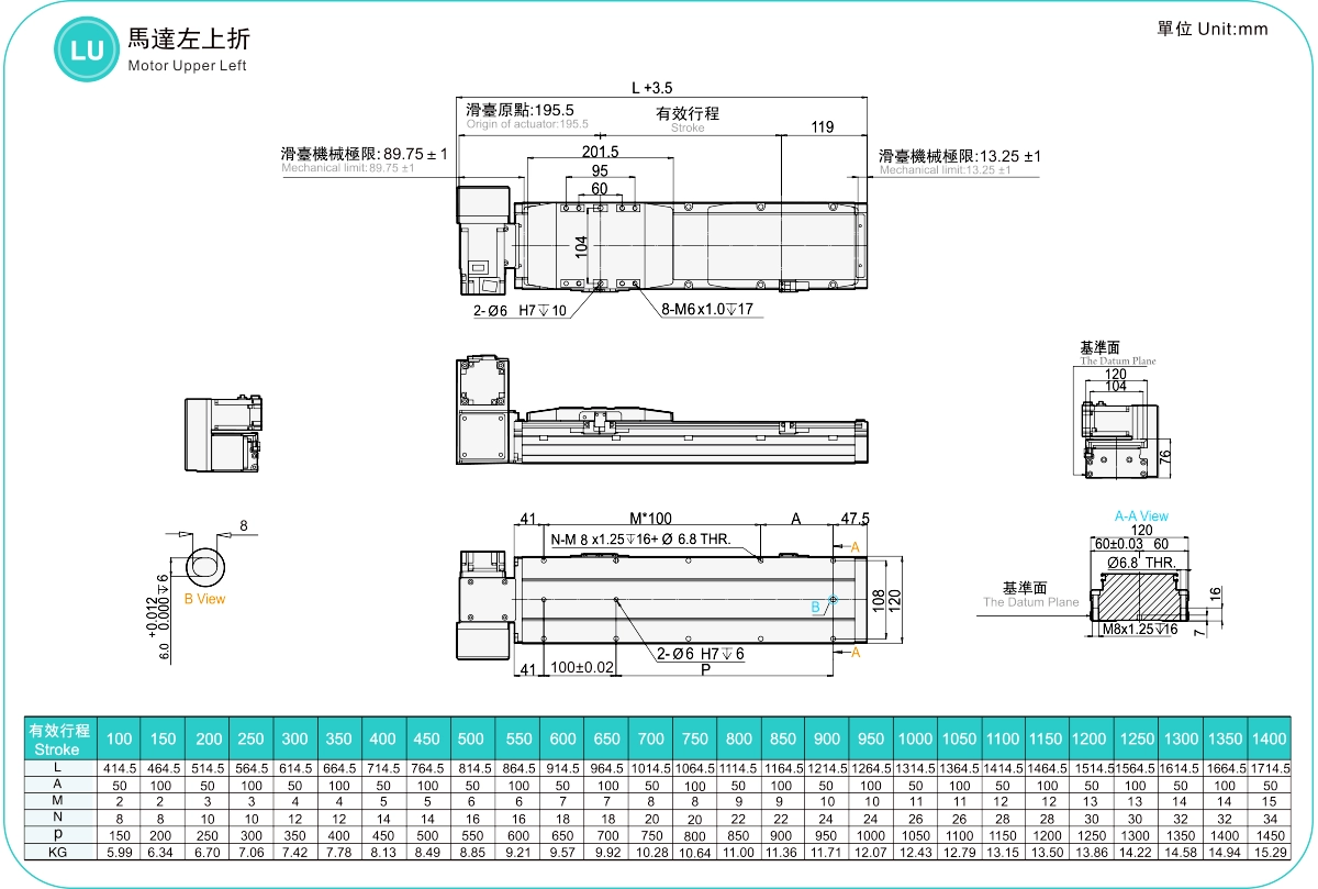 | Hubteilung (mm) | 100–1400 mm / 50 mm Steigung | ||