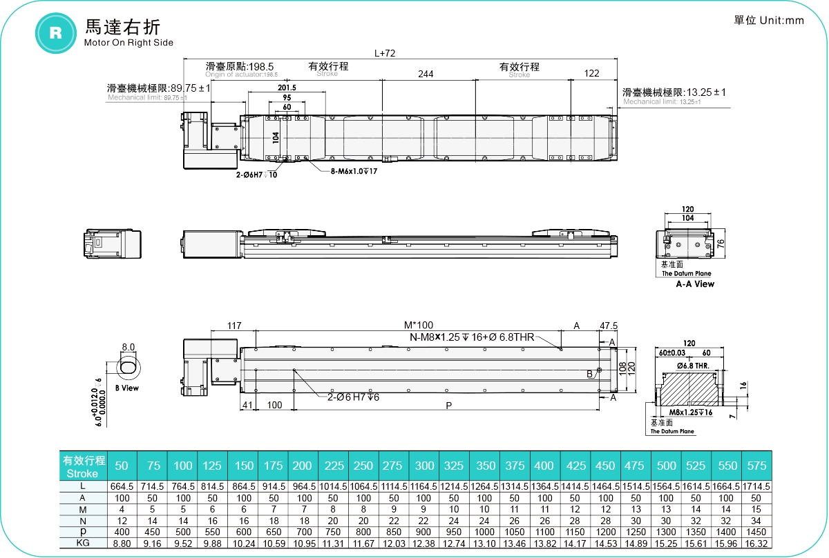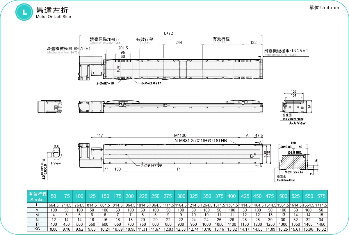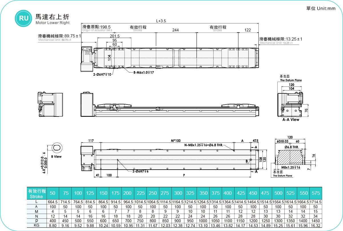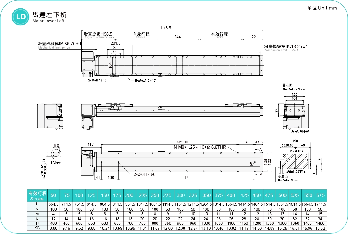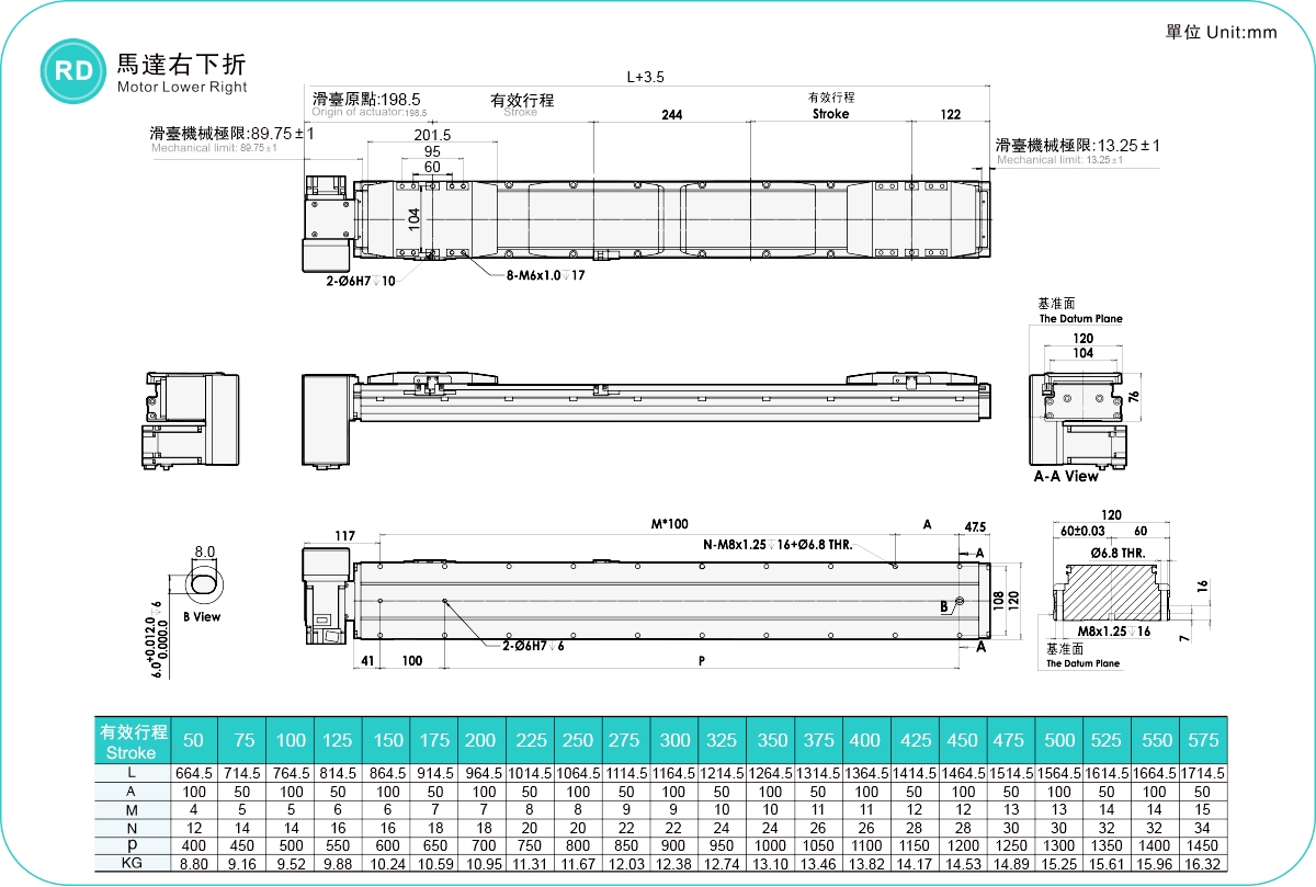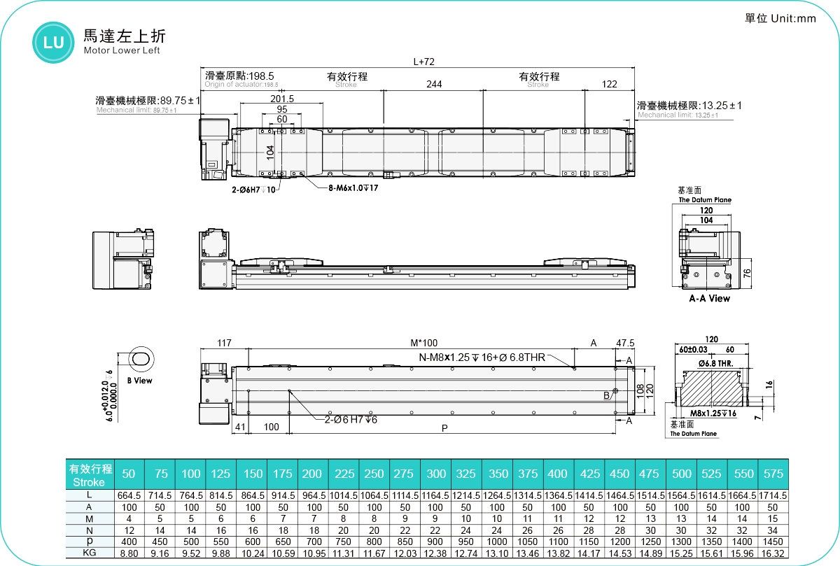 | Hubteilung (mm) | 50-575 mm / 25 mm Steigung | ||