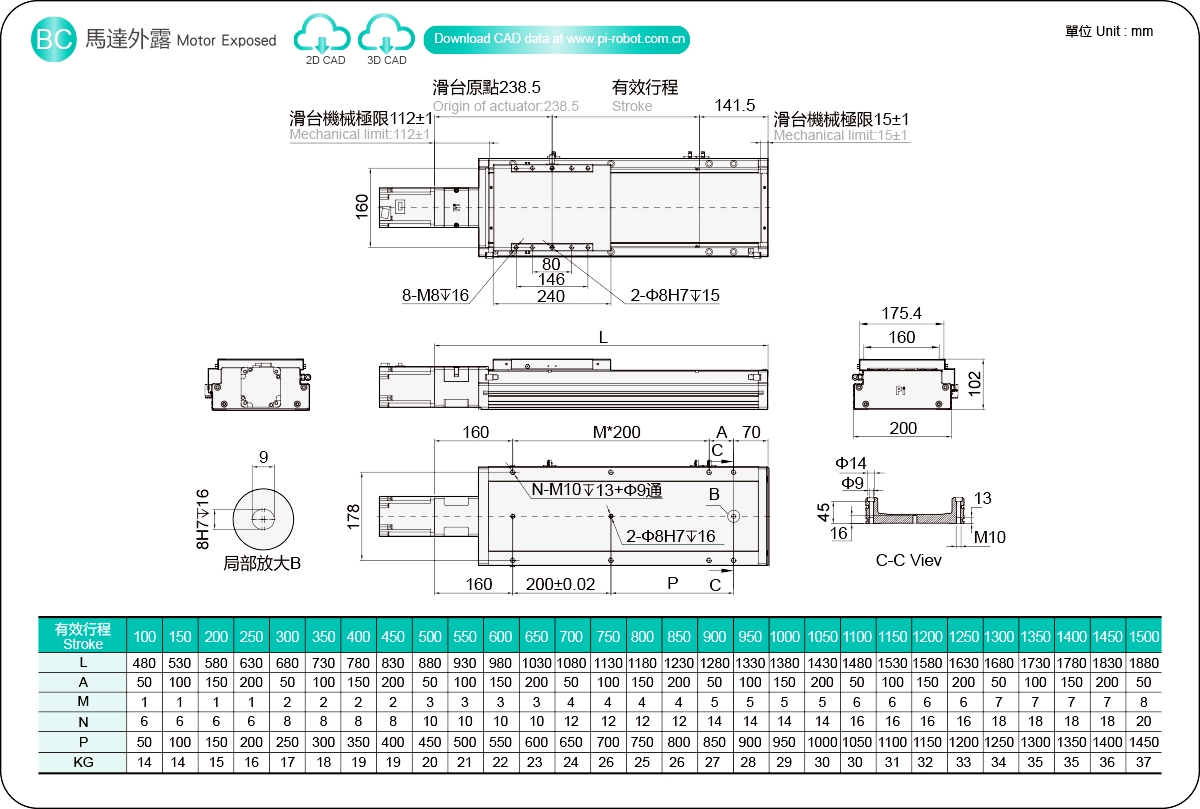 | Kugelgewindetrieb Ø (mm) | C7Ø25 | C7Ø20 | ||||