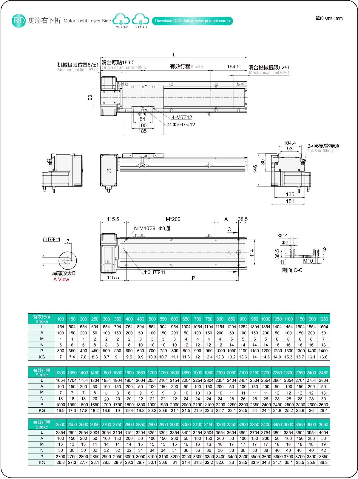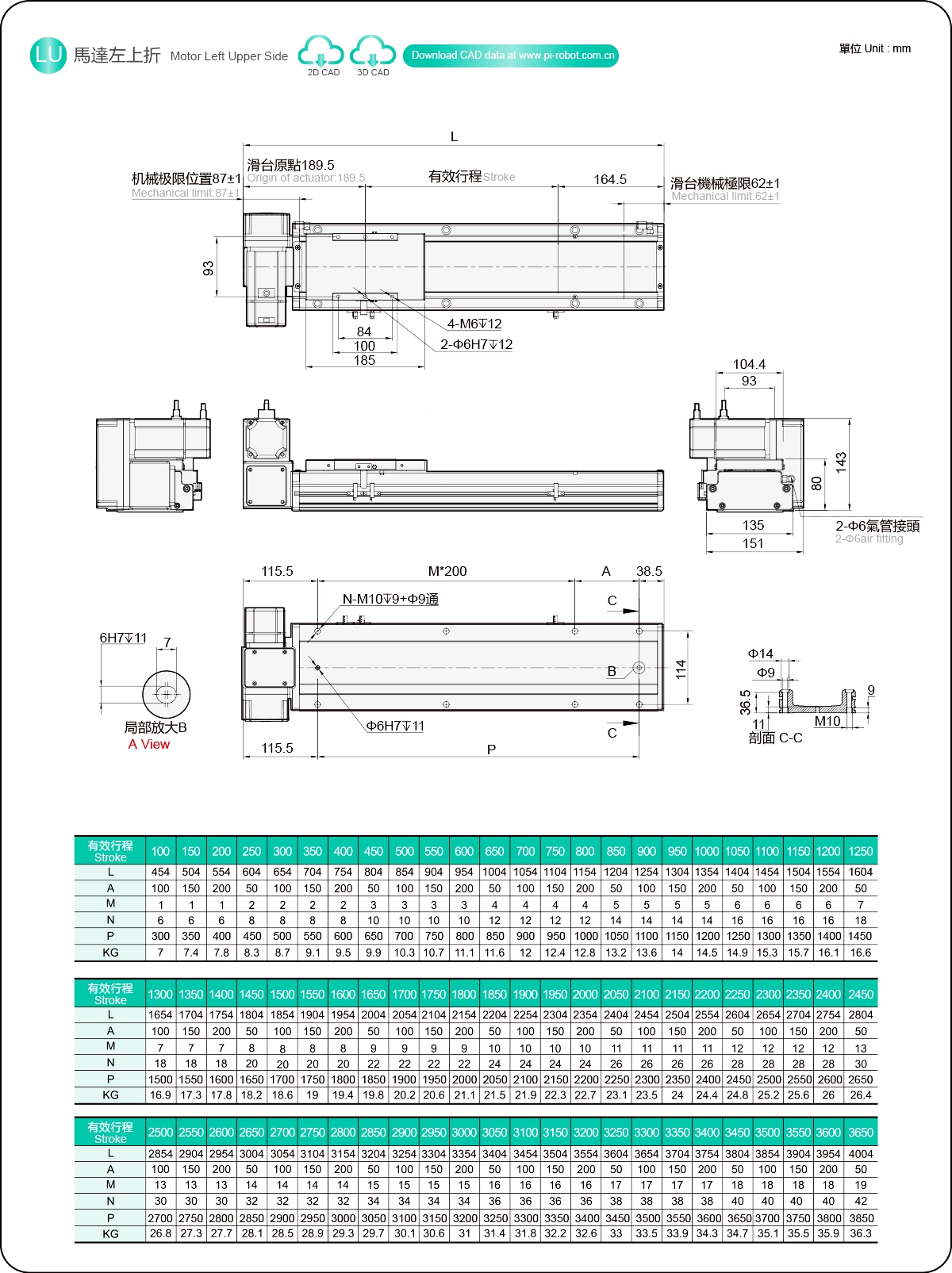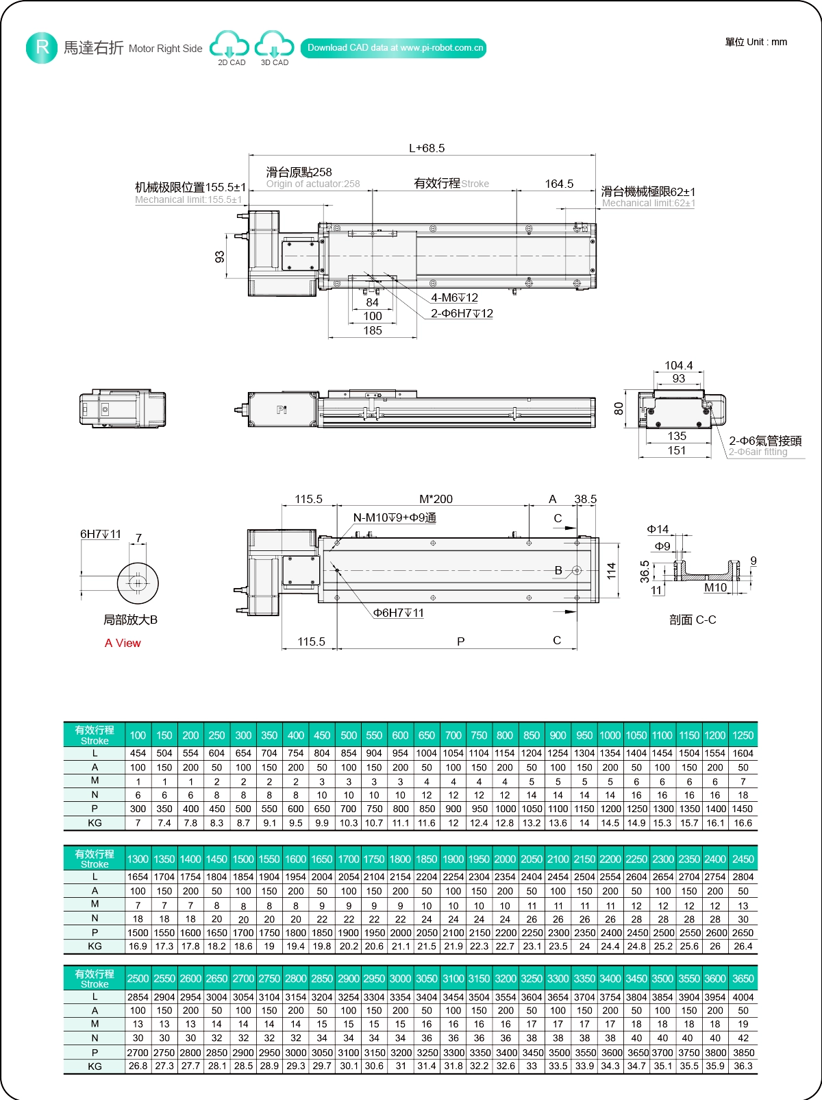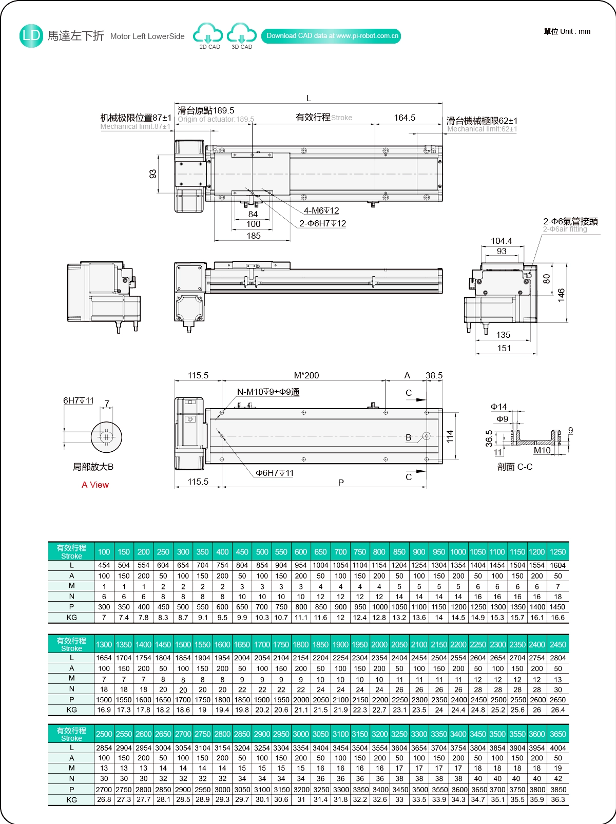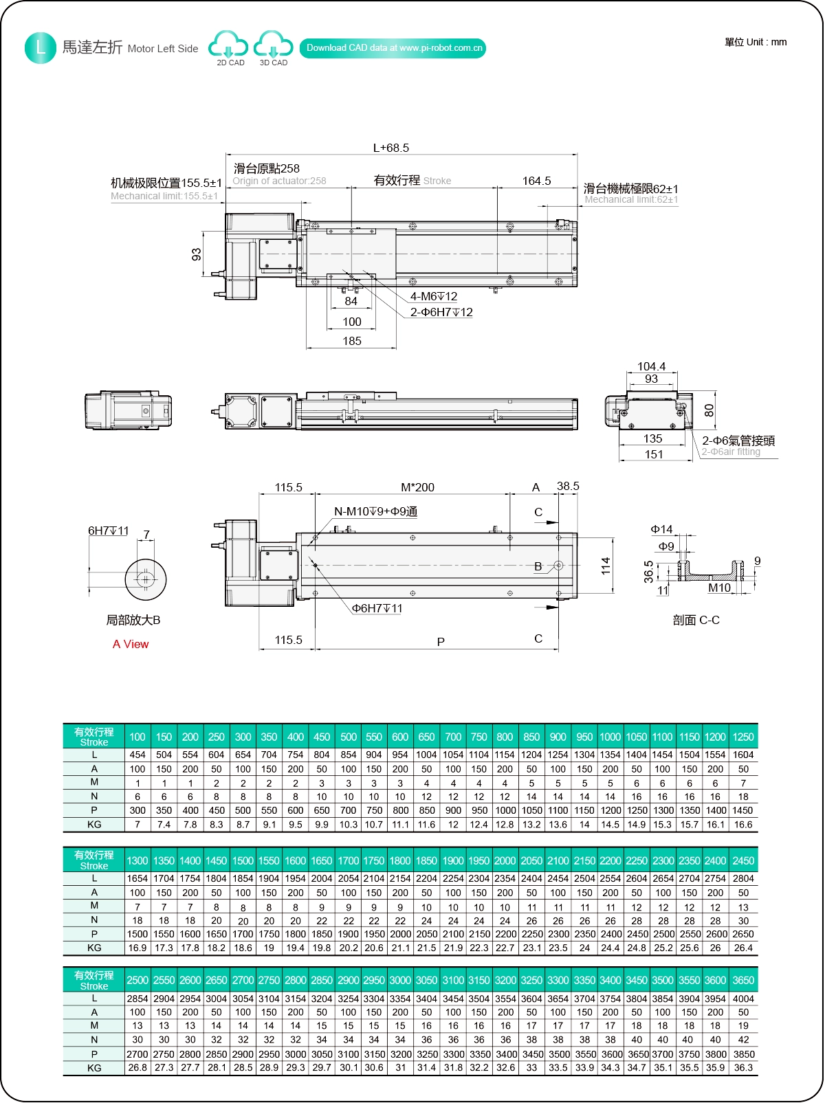 | Hubteilung (mm) | 100-3650 mm / 50 mm Steigung | ||