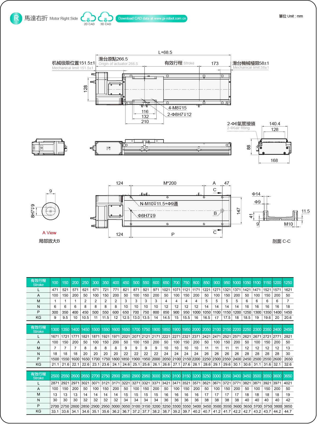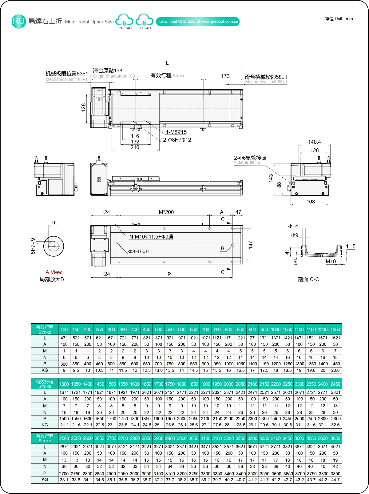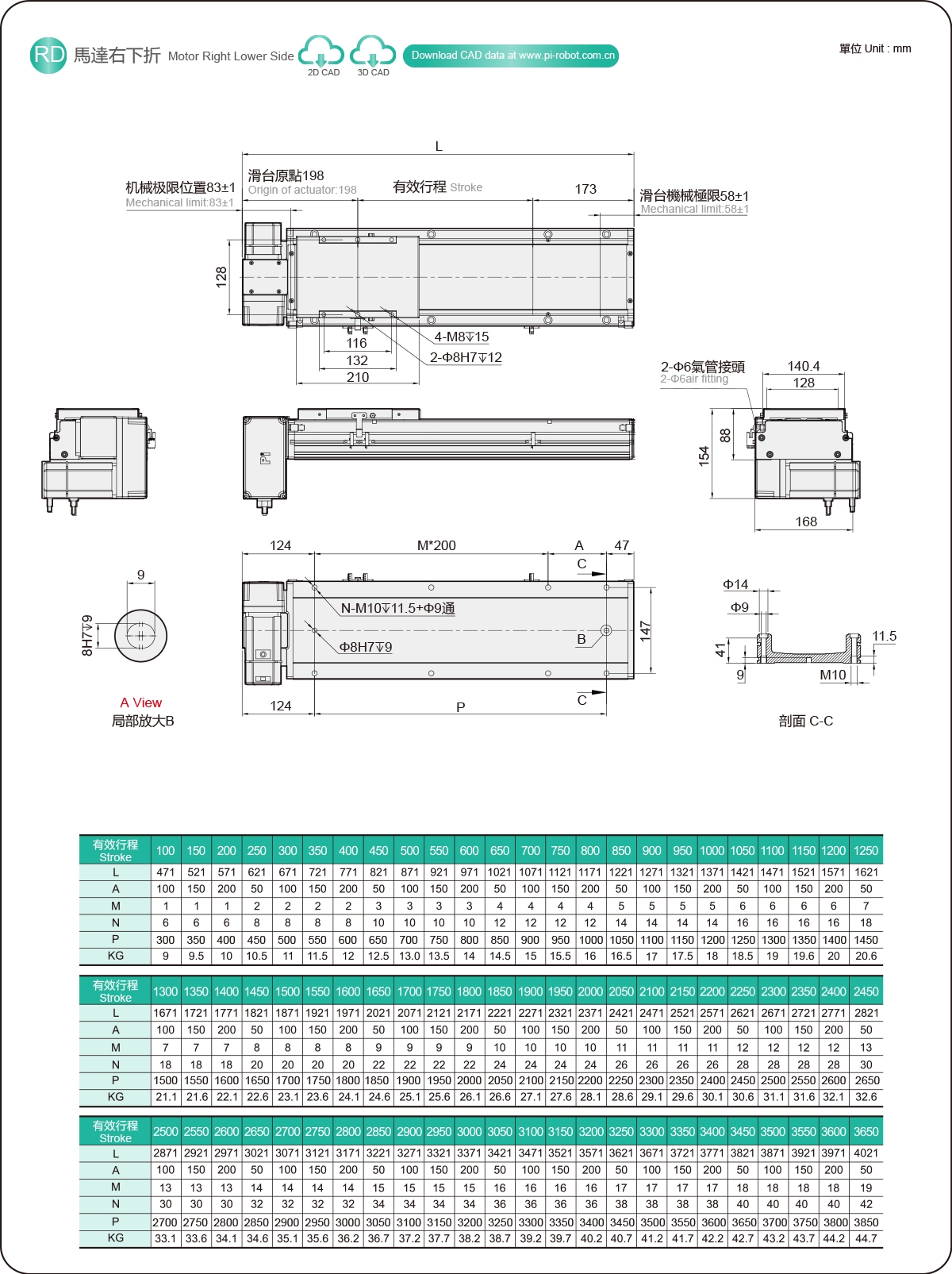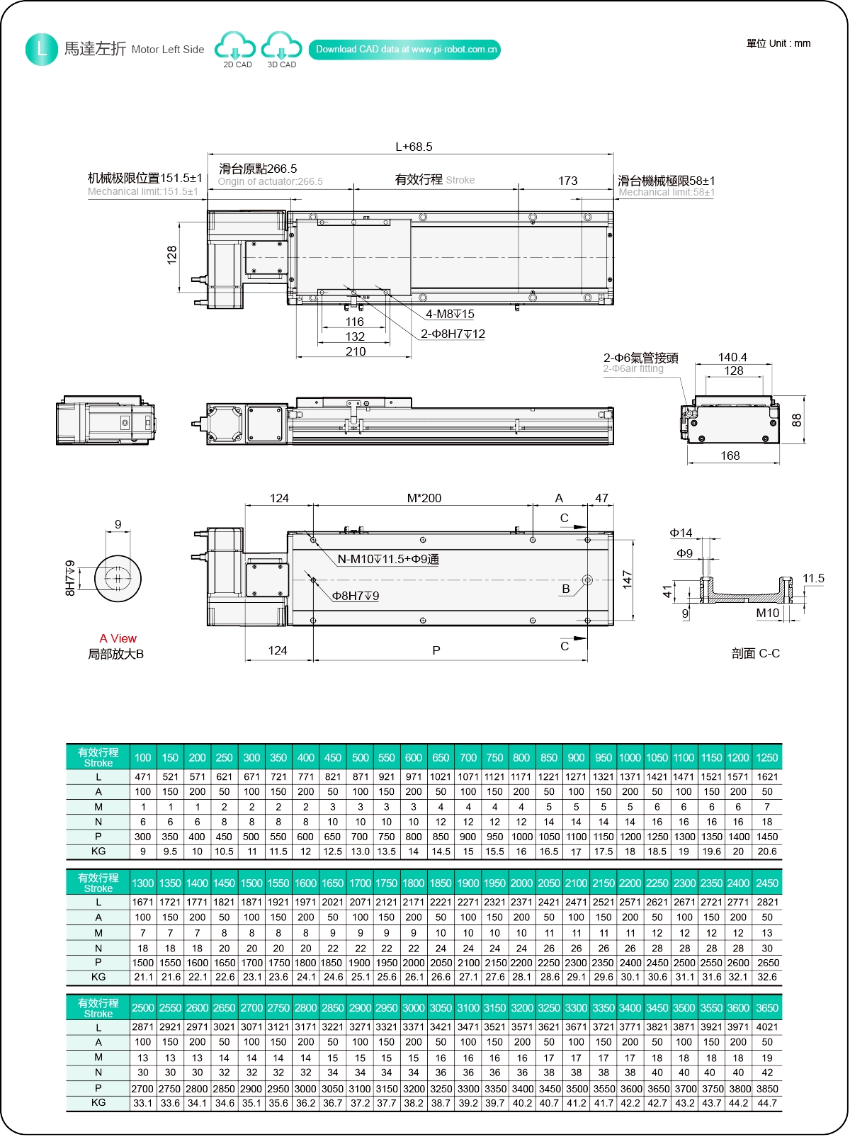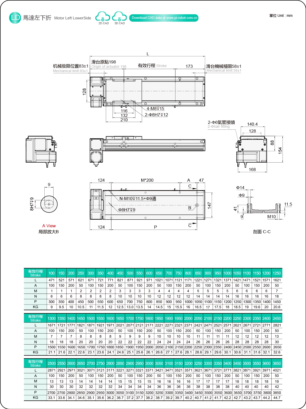 | Hubteilung (mm) | 100-3650 mm / 50 mm Steigung | ||