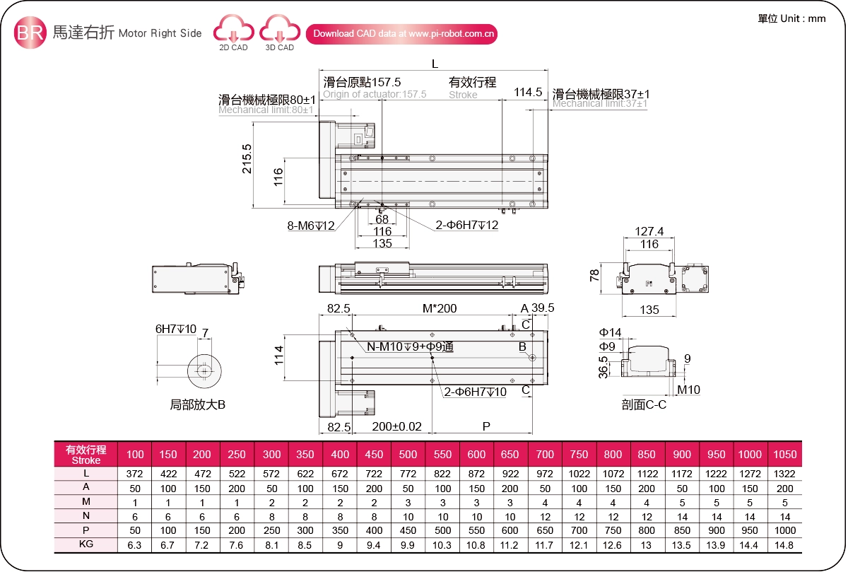 | Hubteilung (mm) ※2 | 100–1050 mm / 50 mm Steigung | |||||