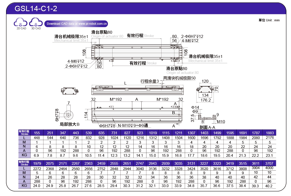 | Standard | Linearmotor-Roboter | GSL7 | P27-C1 | 75 | 65 | ±0,003 | 26 | 57 | 3.3 | 6 | 2500 |