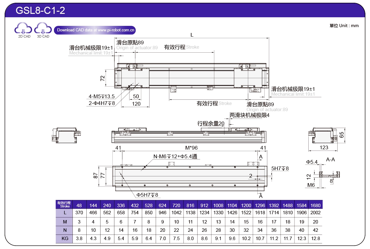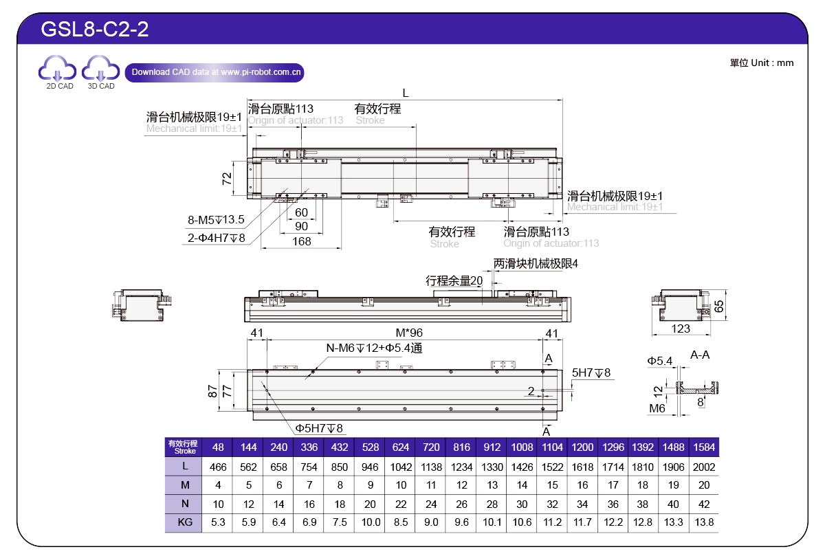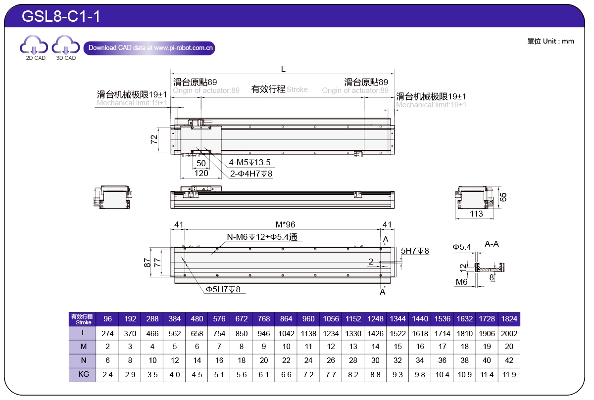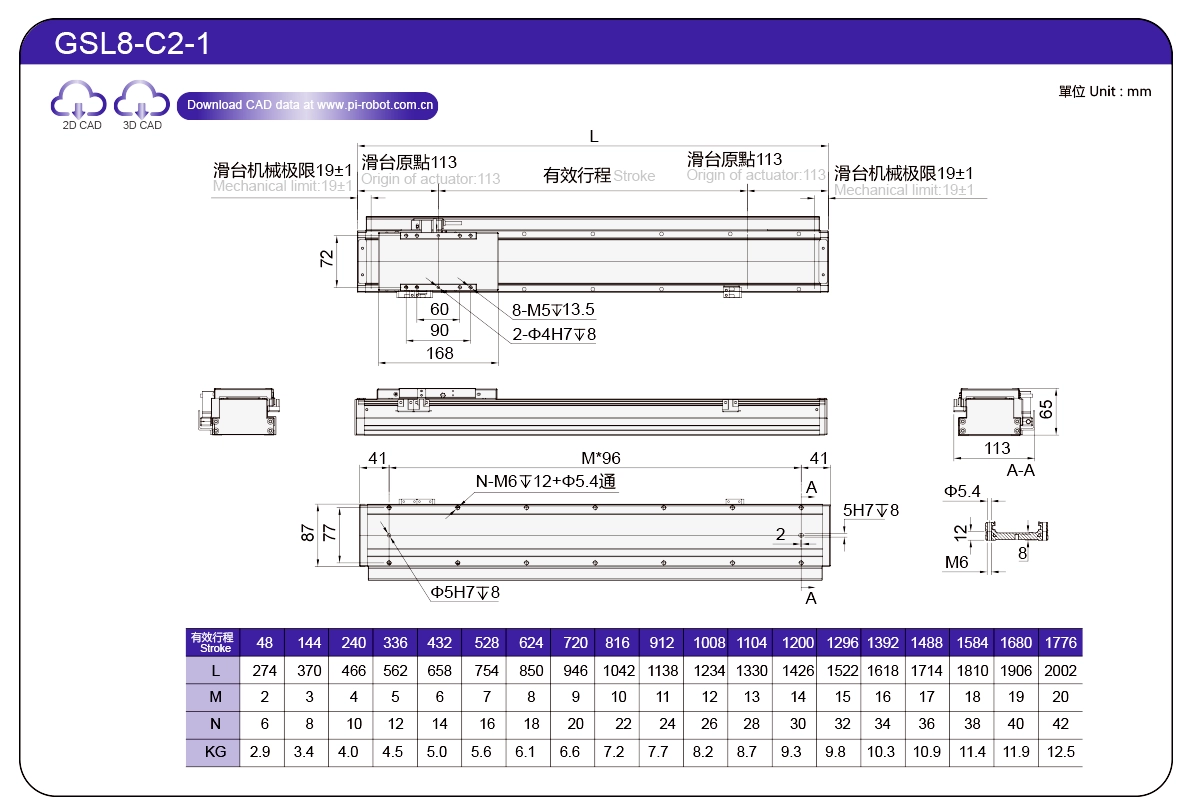 | Standard | Linearmotor-Roboter | GSL7 | P27-C1 | 75 | 65 | ±0,003 | 26 | 57 | 3.3 | 6 | 2500 |