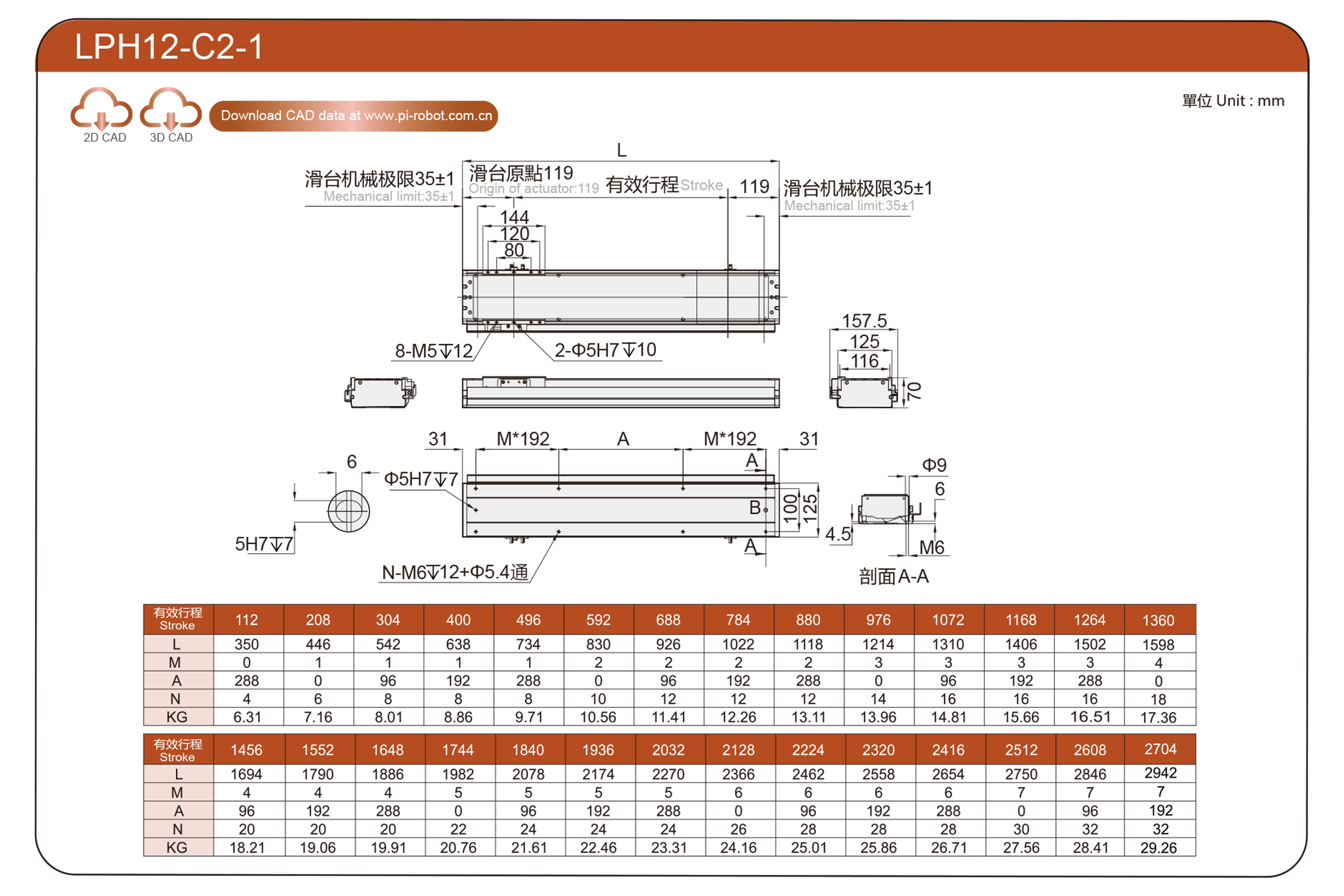 | Standard | Linearmotor-Roboter | LPH12 | P40-C2-S | 125 | 70 | ±0,003 | 80 | 176 | 3.3 | 20 | 2500 |