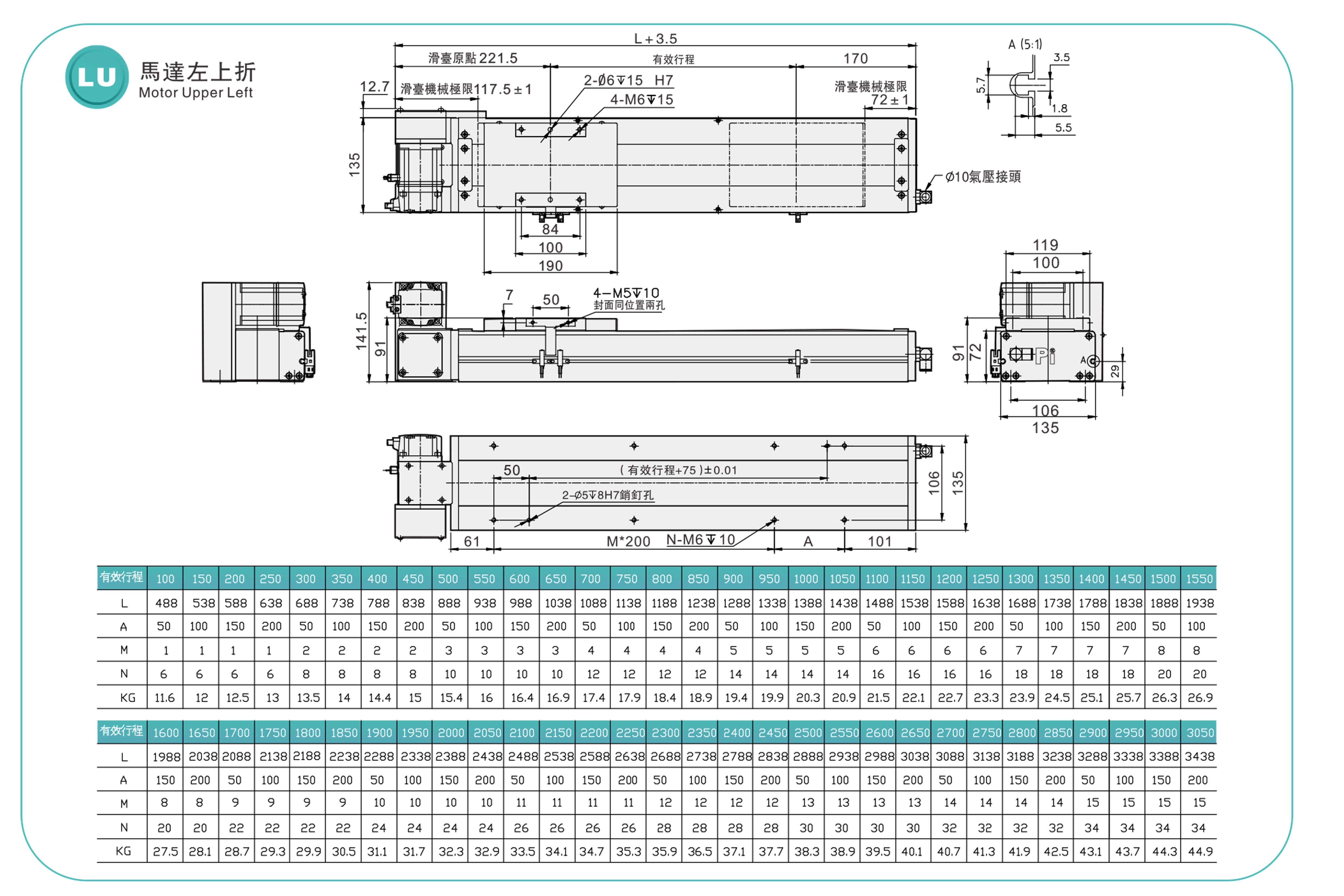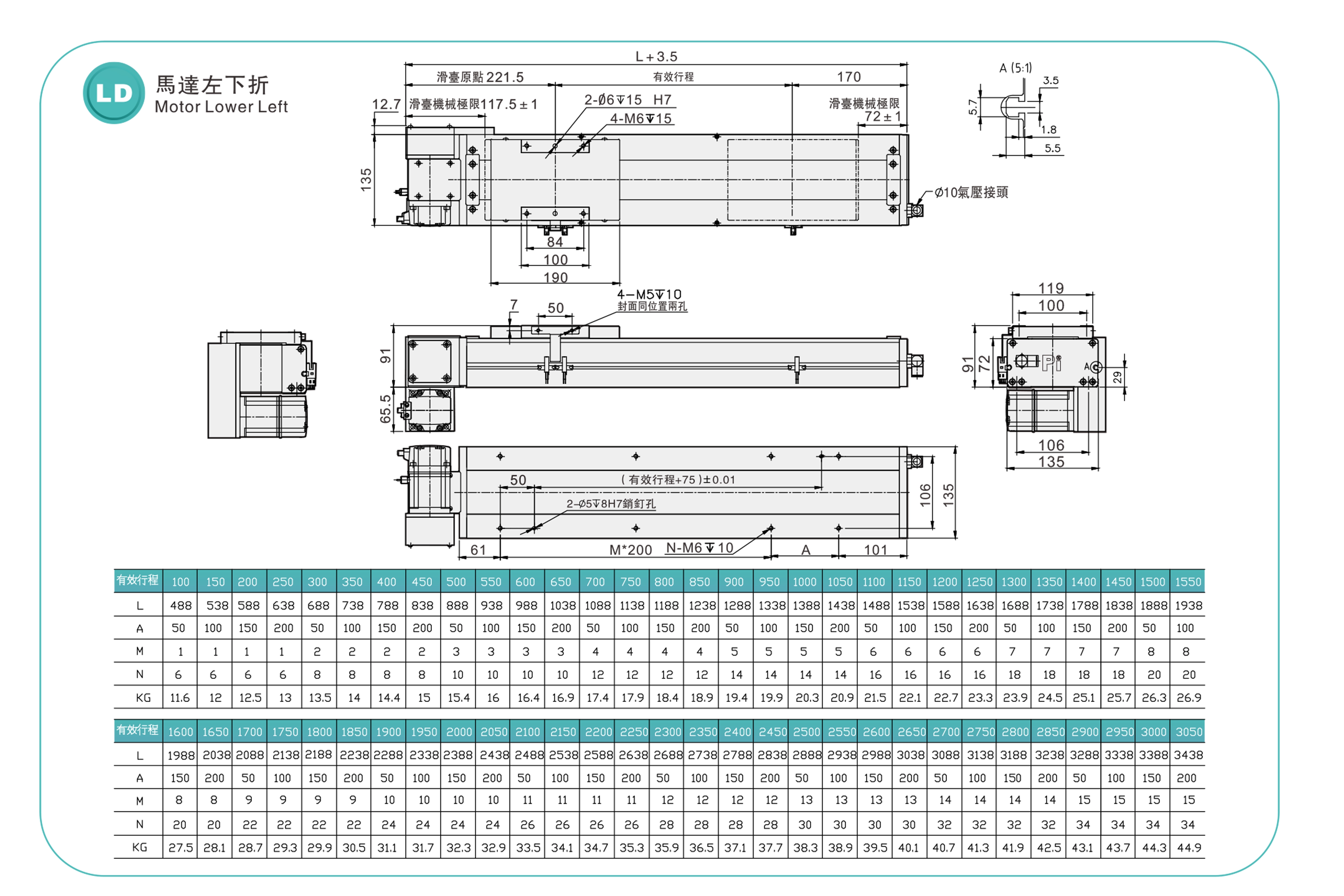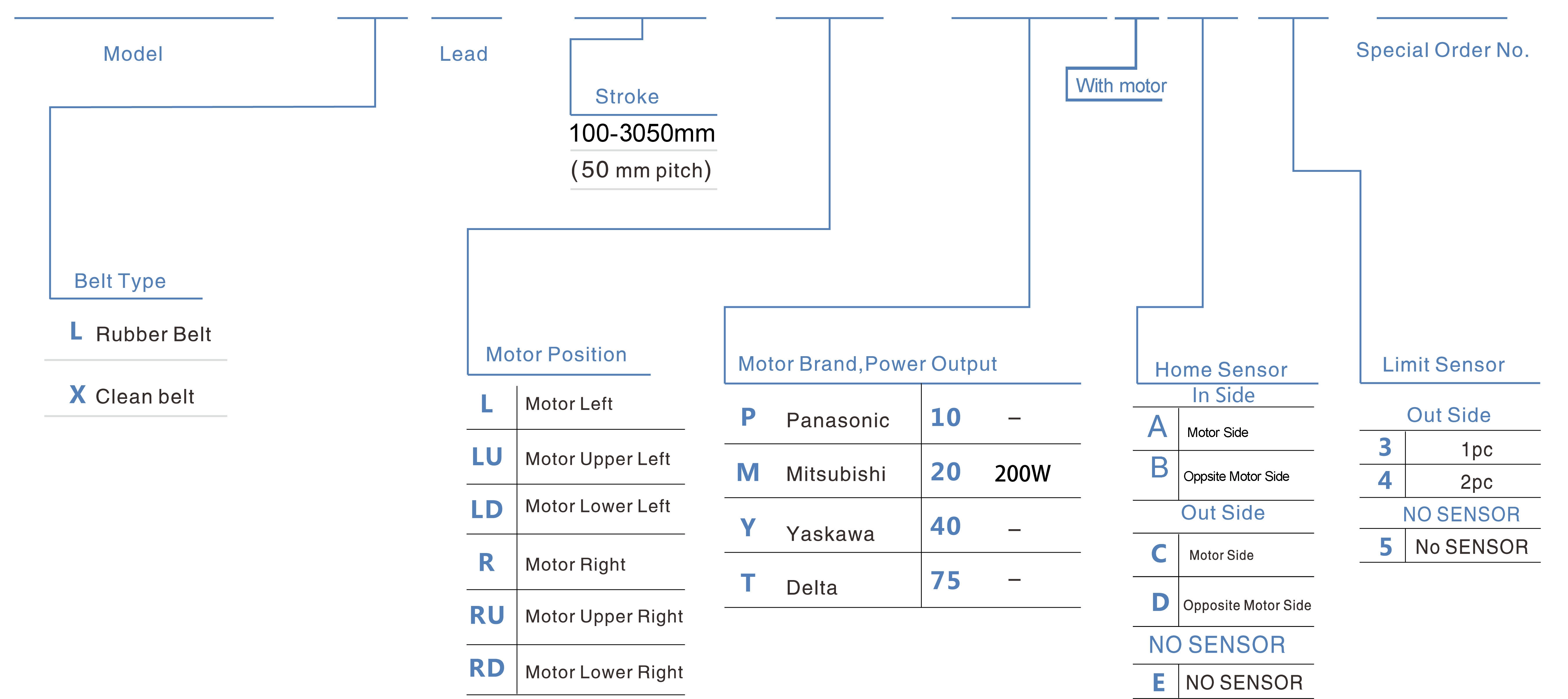 | Hubteilung (mm) | 100–3050 mm / 50 mm Steigung | ||