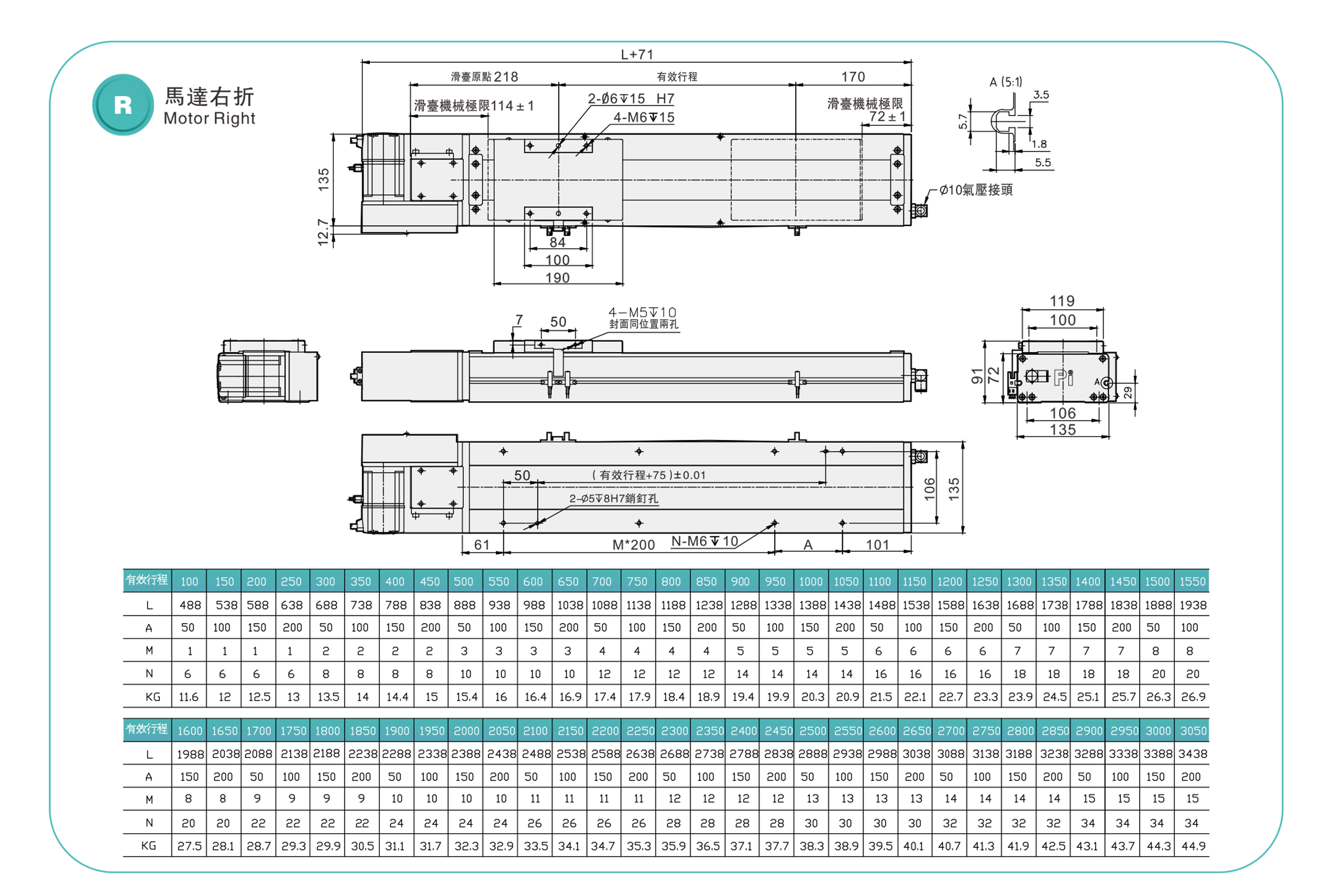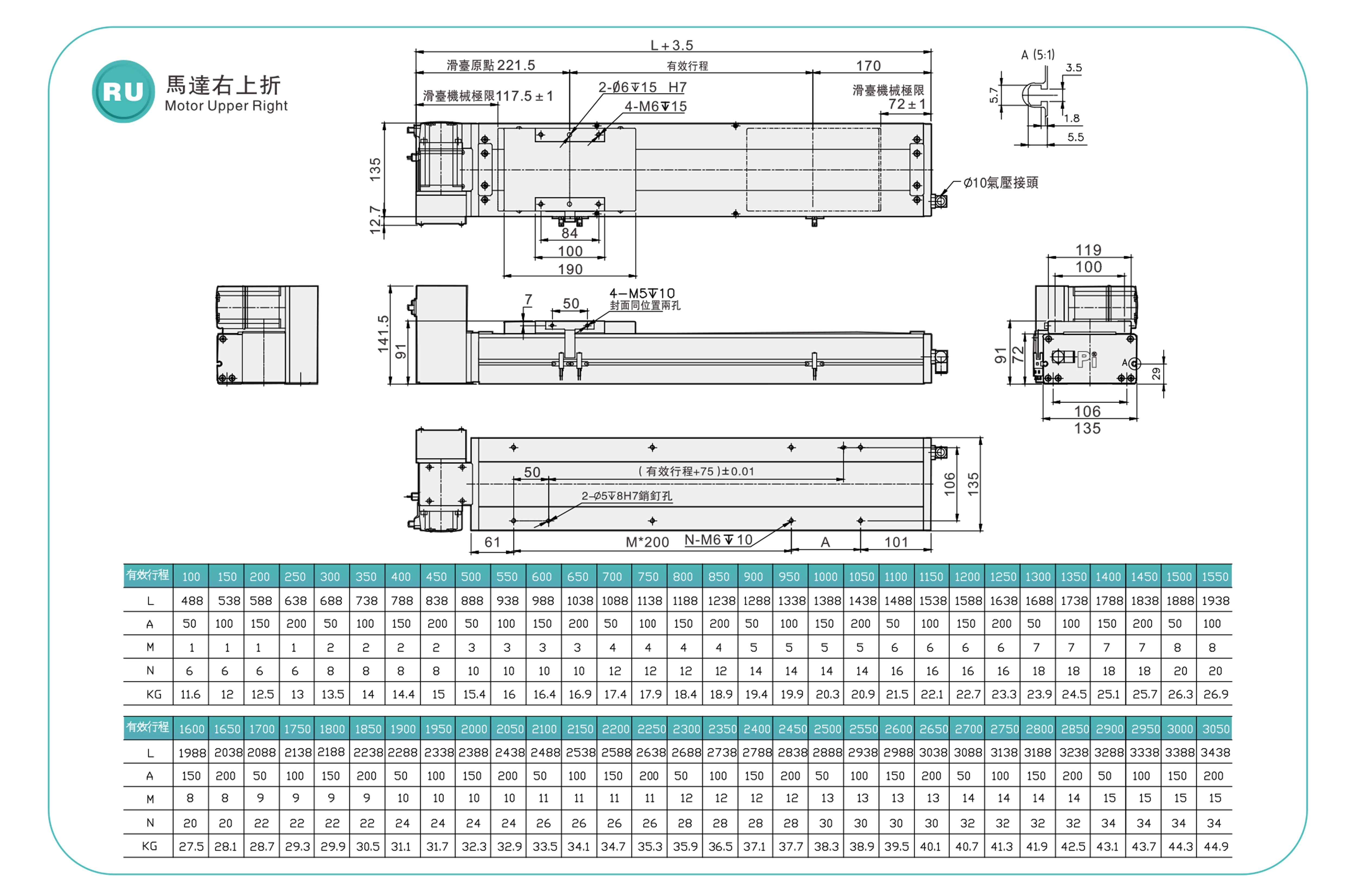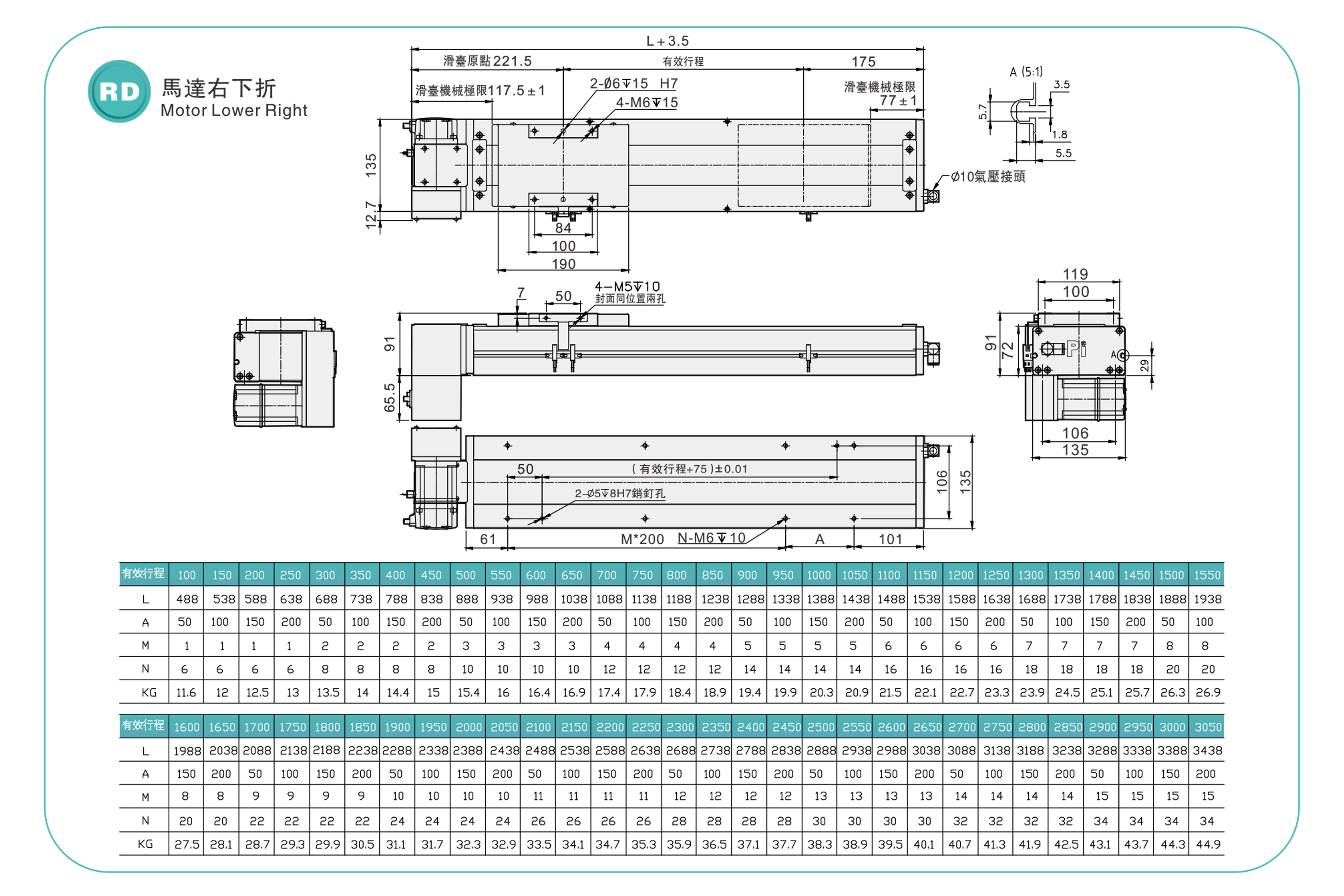 | Hubteilung (mm) | 100–3050 mm / 50 mm Steigung | ||