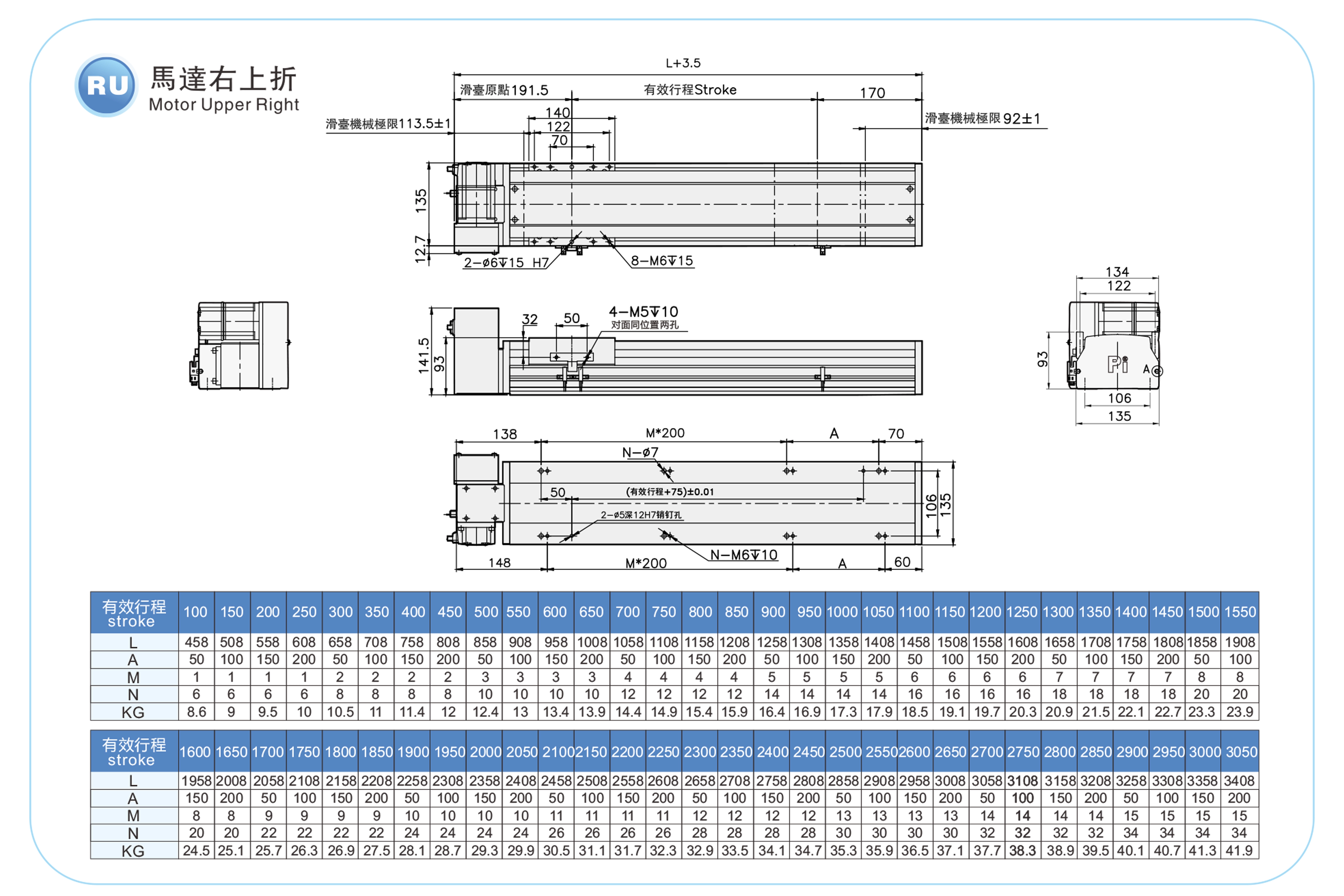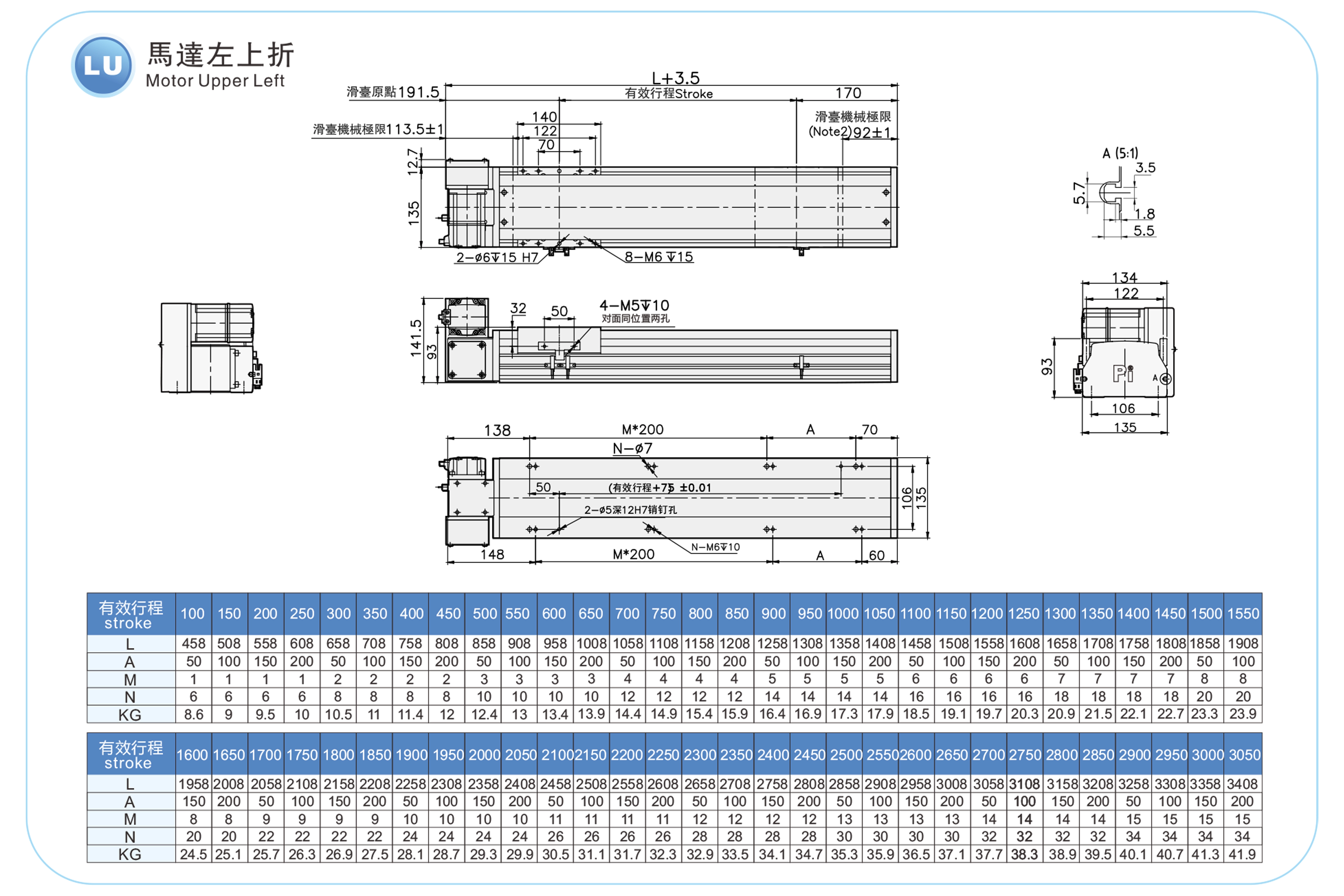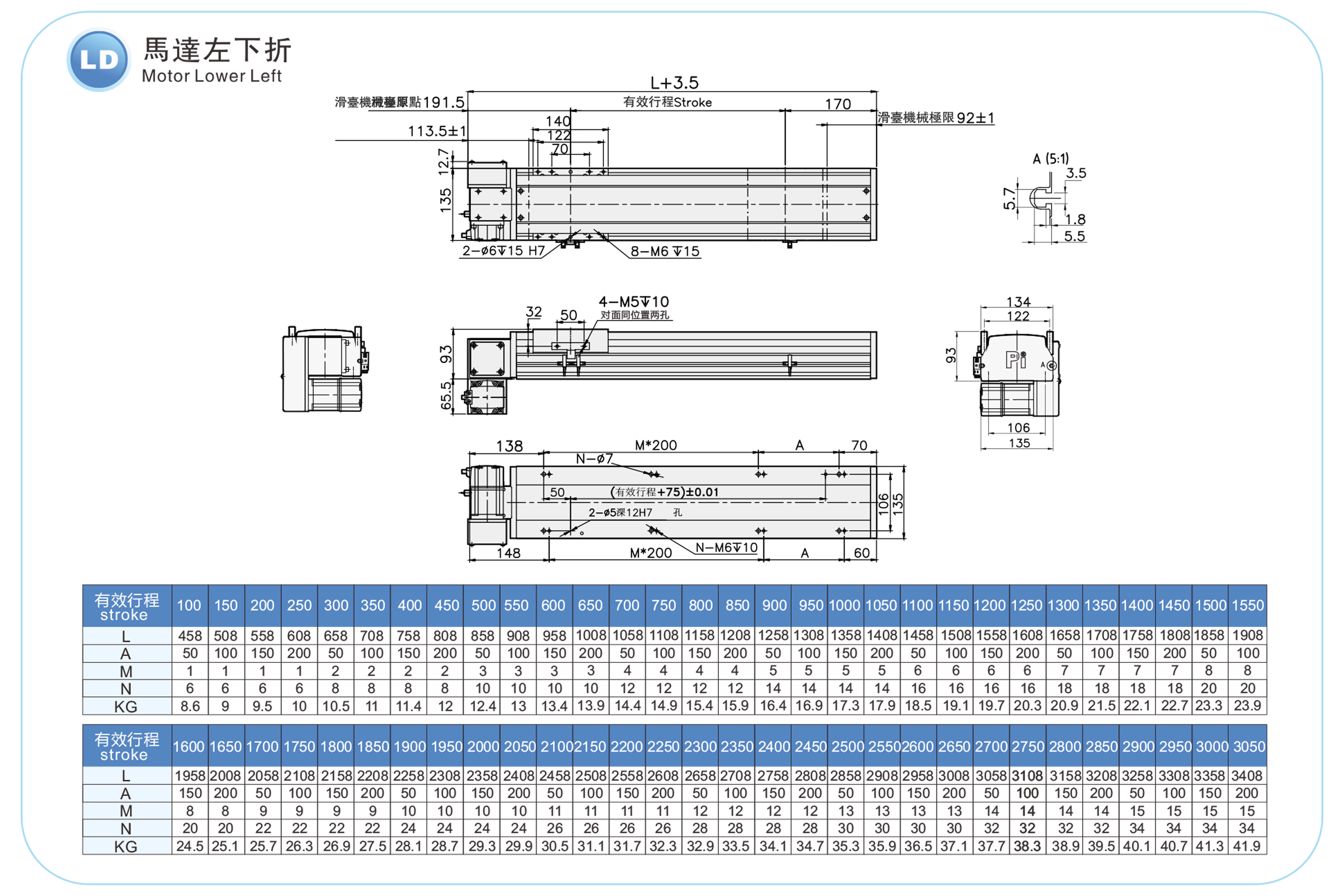 | Hubteilung (mm) | 100–3050 mm / 50 mm Steigung | ||