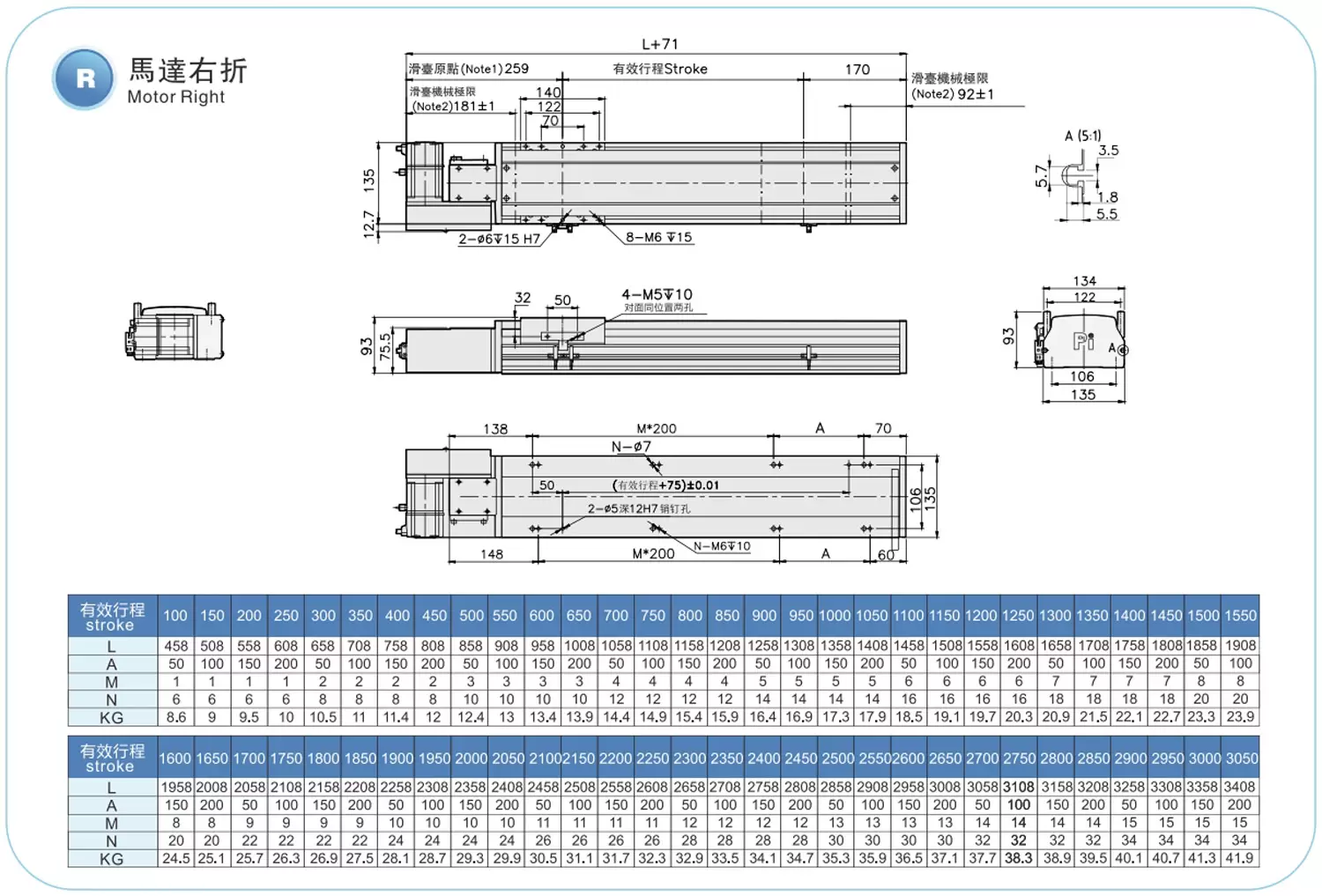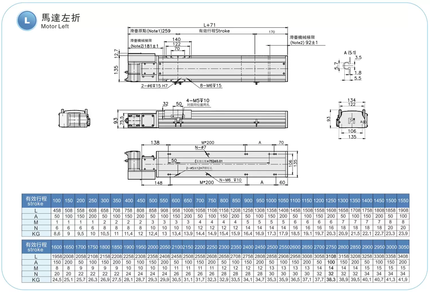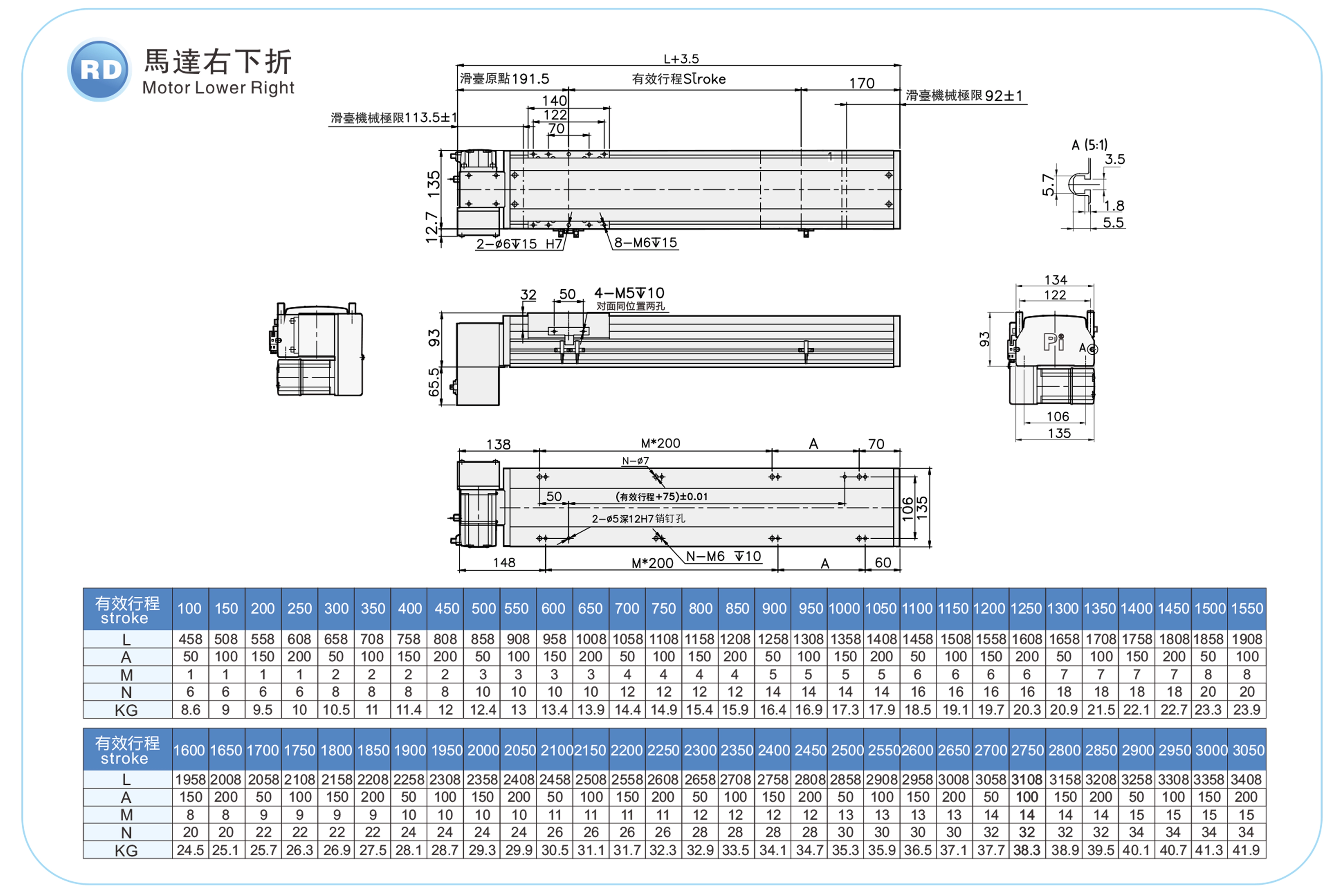 | Hubteilung (mm) | 100–3050 mm / 50 mm Steigung | ||