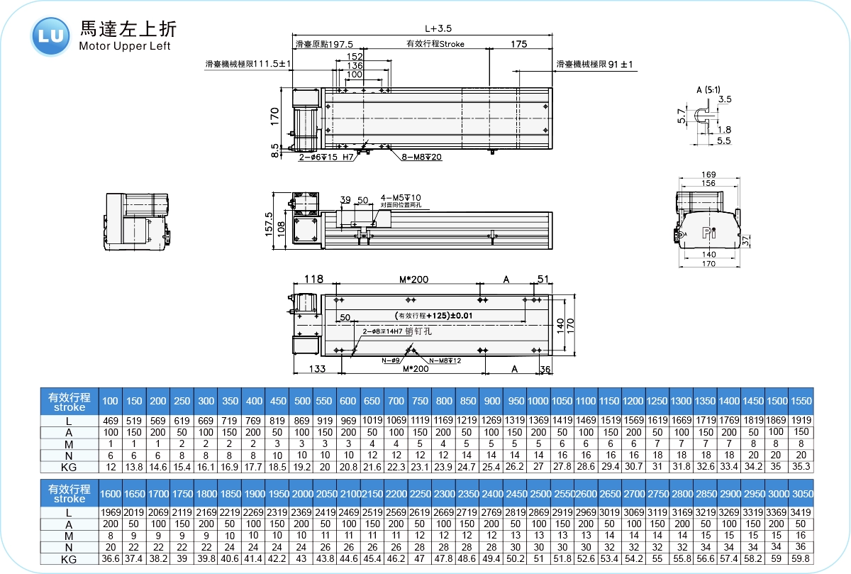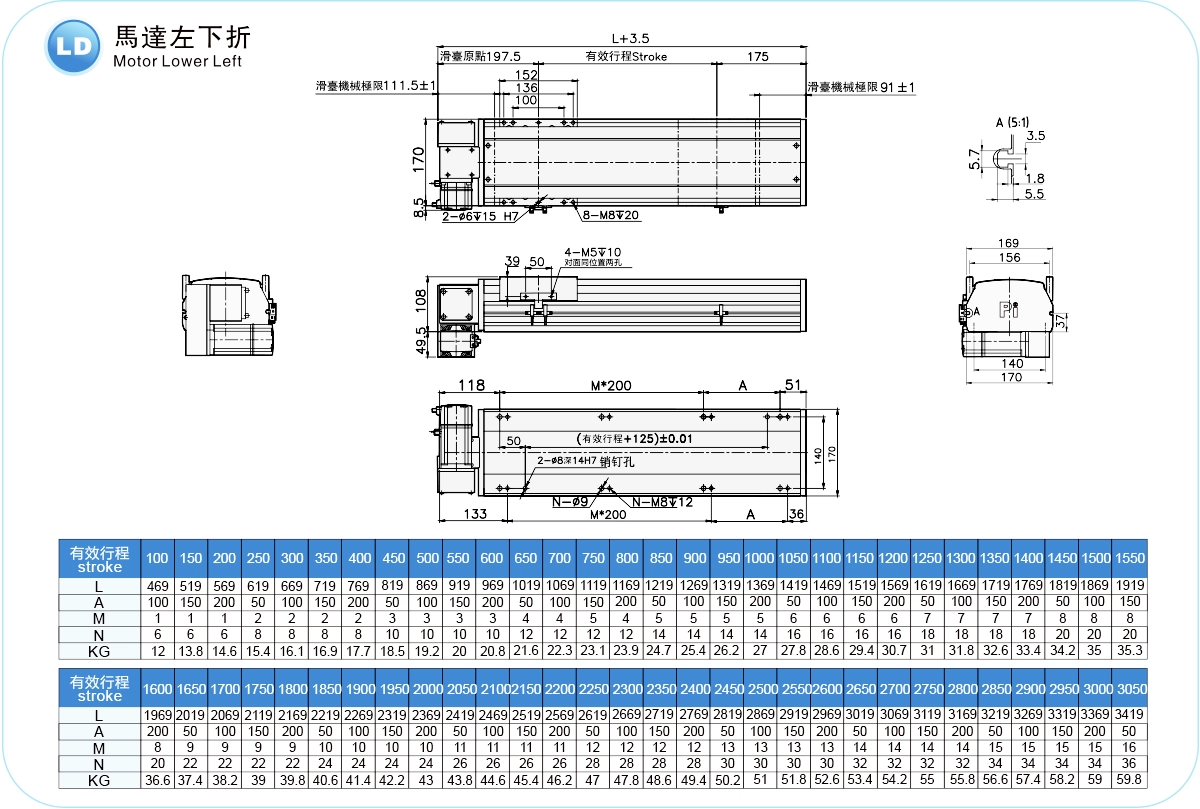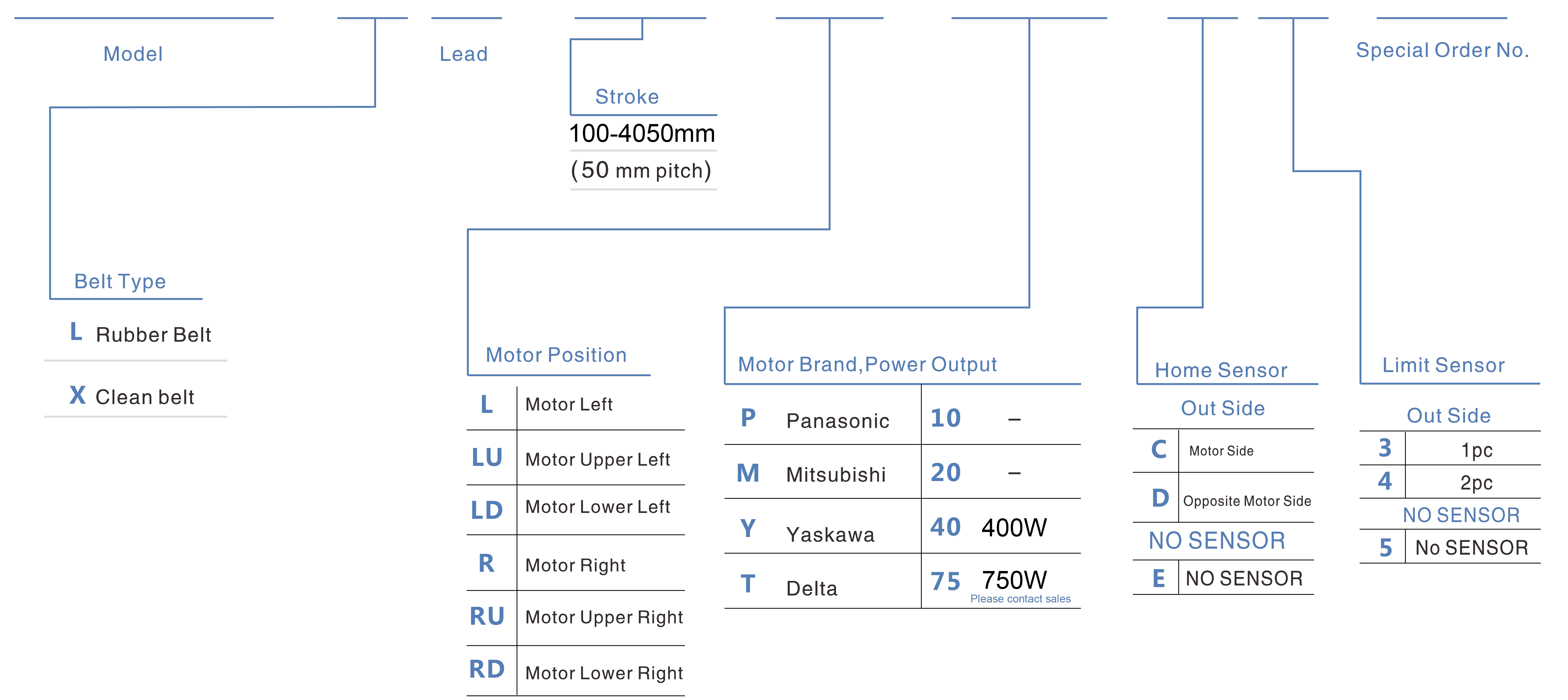 | Hubteilung (mm) | 100-4050 mm / 50 mm Steigung | ||