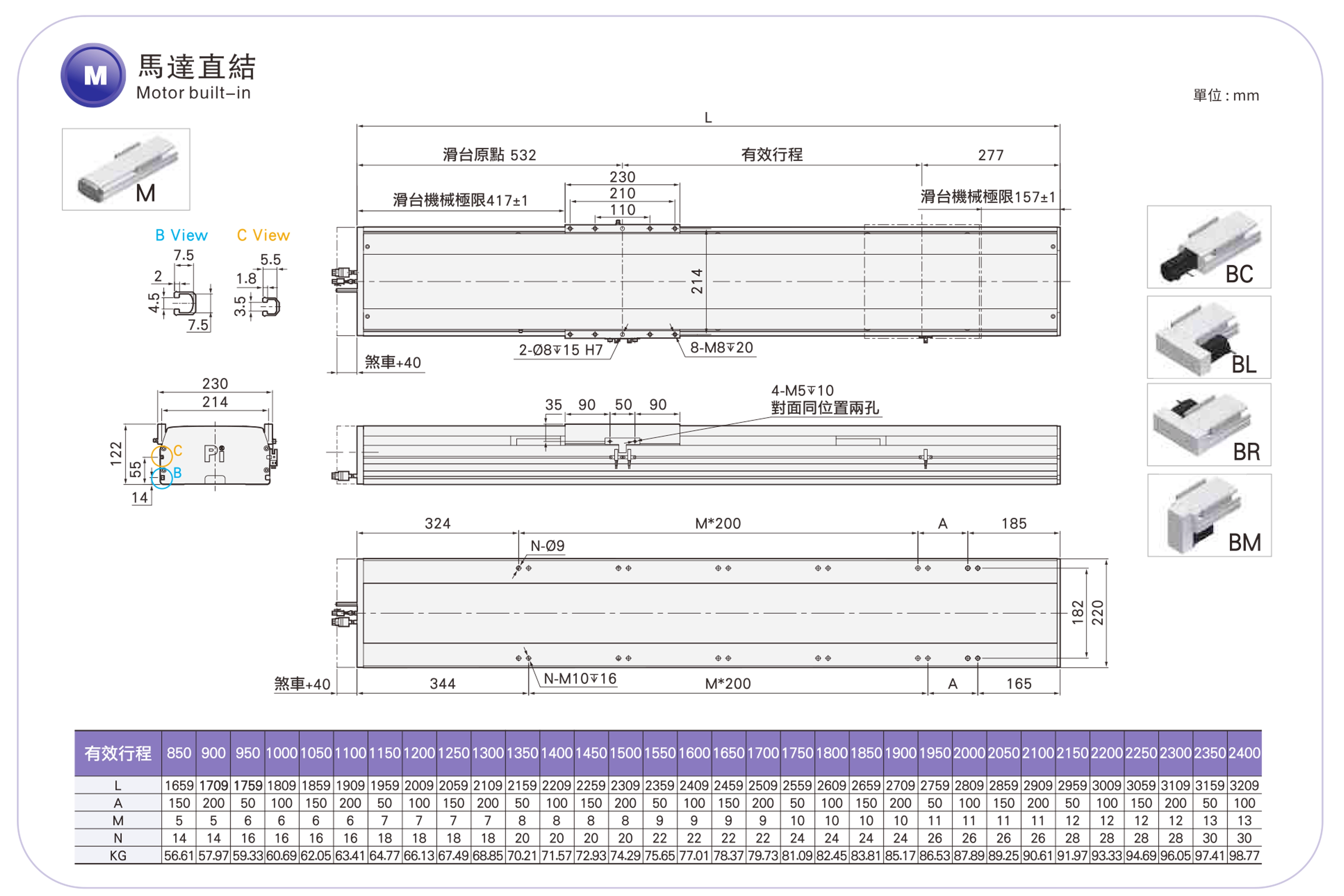 | Hochsteife Linearführung (mm) | B20XH15 | |||||