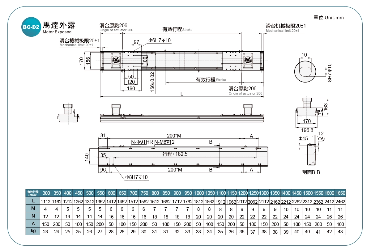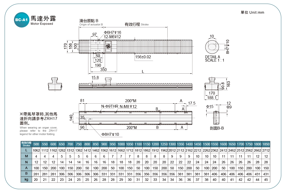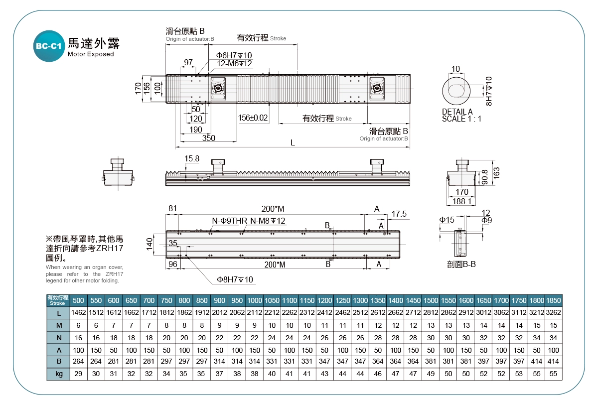 Durch den Stahlbandschutz wird verhindert, dass Fremdkörper direkt auf den Schiebetisch fallen. Der maximale Hub im Schiebetisch beträgt 1500 mm. Die Einbauposition des Mehrwegemotors ist frei wählbar, was die Maschinenkonstruktion flexibler gestaltet. Er ist mit Servomotoren verschiedener Hersteller kompatibel.